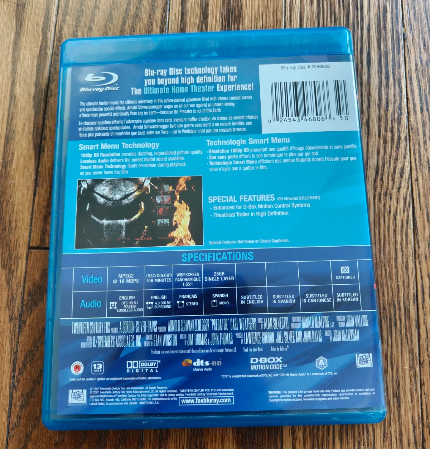 Arnold Schwarzenegger stars in Predator, a sci-fi action film. This Blu-Ray disc offers 1080p resolution and HD Master Audio. Includes English, French, and Spanish audio options.
