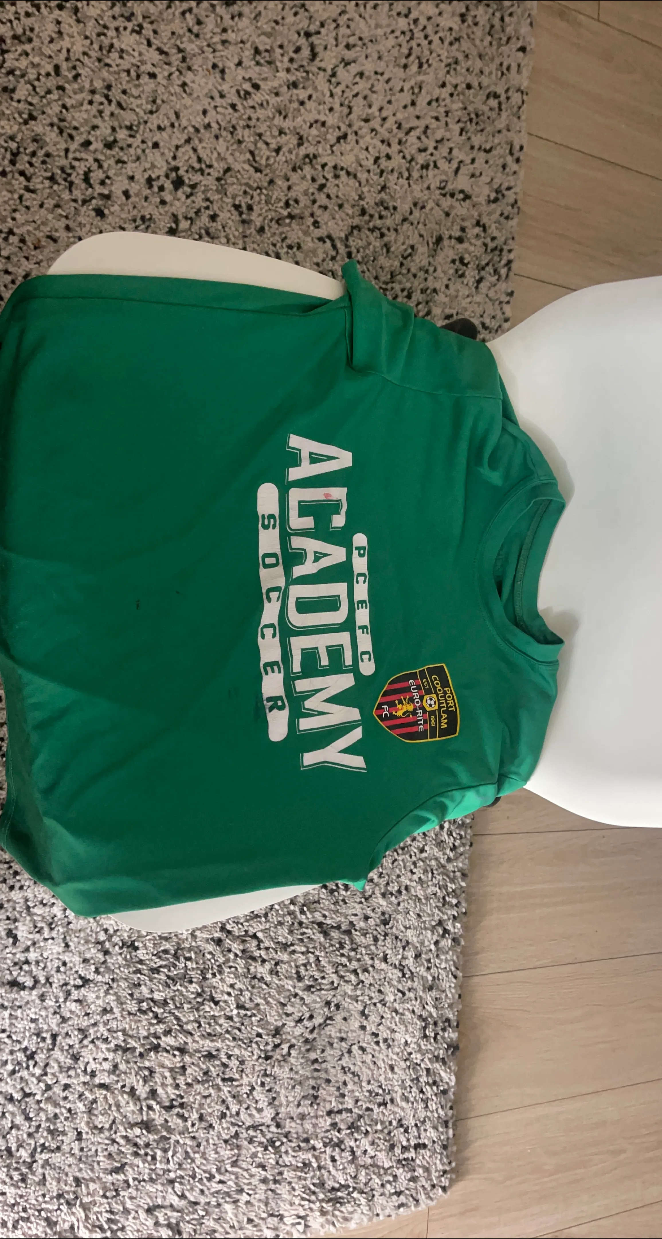 Selling a green Soccer Academy t-shirt in youth size medium. It's in good condition and perfect for any young soccer player!