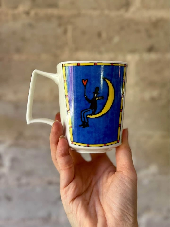 Rosenthal, Studio-Linie, vintage, antique, collectible, German porcelain, German china, designer mug, rare, unique, discontinued, Flash Love Story, Love in the Moon, Dorothy Hafner, Kitty Kahane, folk art, artist collection, Germany, tea cup, coffee mug, ceramics, decor, gift. Studio Line, Studio-line, Studio-Linr