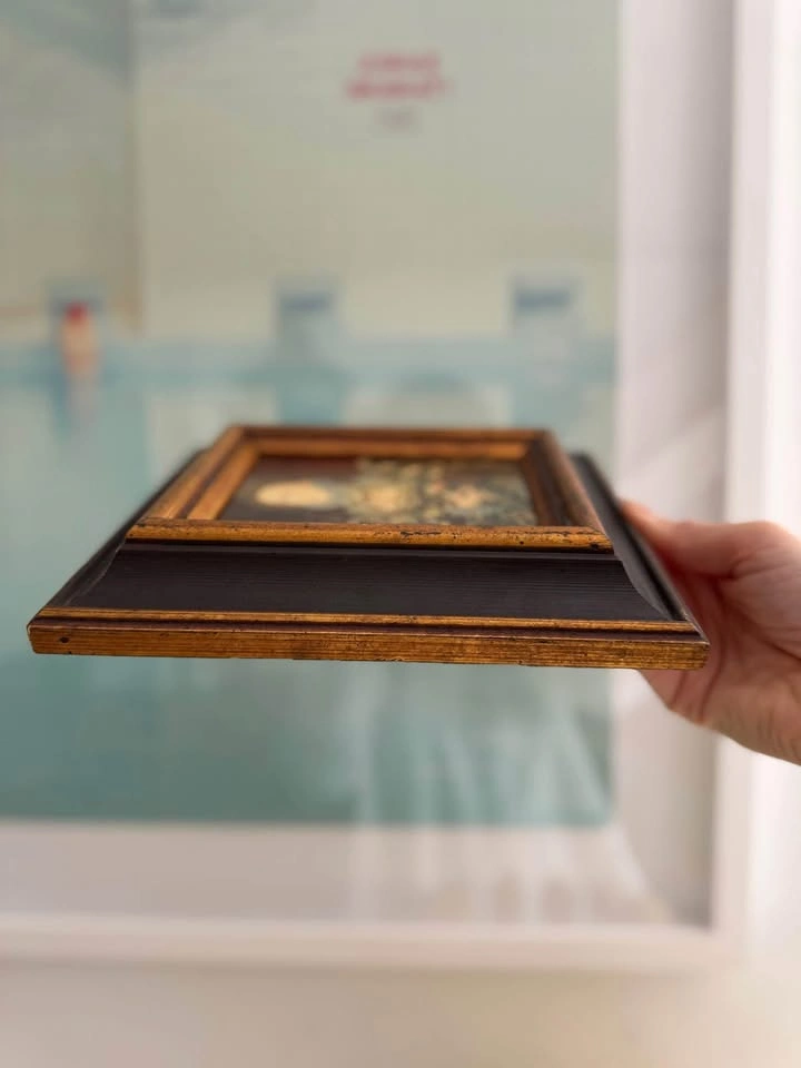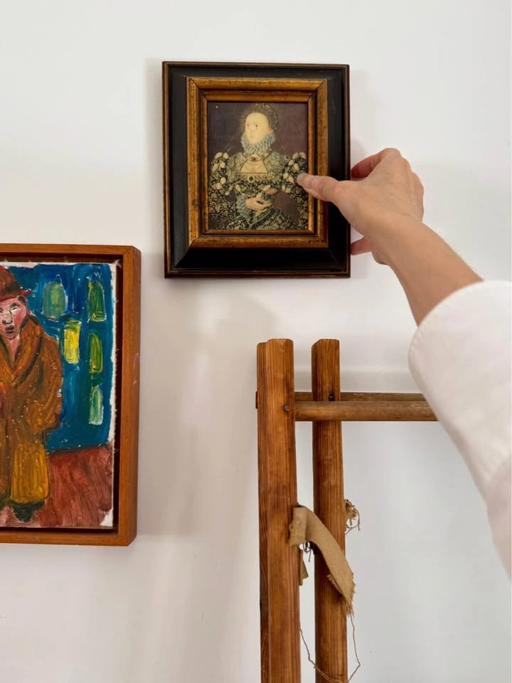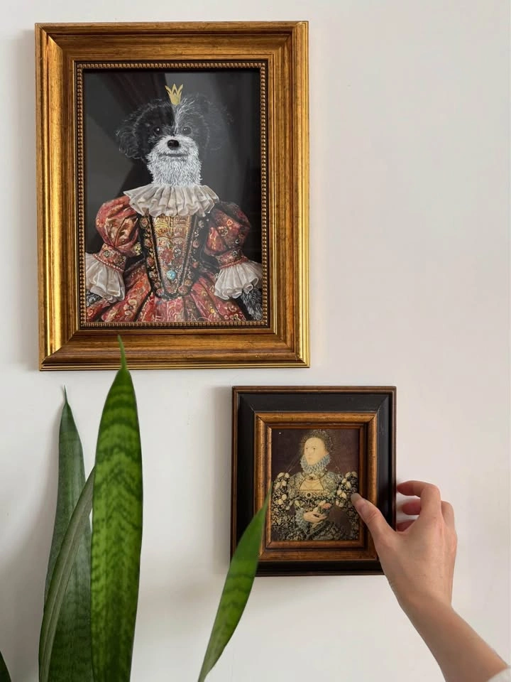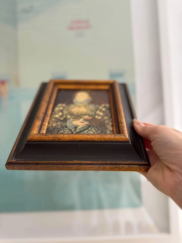 Vintage Professionally Framed Print of Queen Elizabeth I by Nicholas Hilliard Queen Elizabeth I by Nicholas Hilliard oil on panel, circa 1575 On display at the National Portrait Gallery, London Dimensions: 6.75” x 7.75” x 1” Perfect for a gallery wall, a study, or as a standalone statement piece. Ideal for lovers of Tudor history, English royalty, and classical art. Please note there is an area of discolouration at the nose and hand. Not very noticeable when hung. Vintage, Antique, Queen Elizabeth I, Tudor, Royalty, English History, Renaissance, Ornate Frame, Gold Frame, Gallery Wall, Wall Decor, Art Print, Painting, Regal, Classic. This portrait is known as the 'Phoenix' portrait after the prominent phoenix jewel that Elizabeth wears at her chest, which was an emblem for rebirth and chastity.