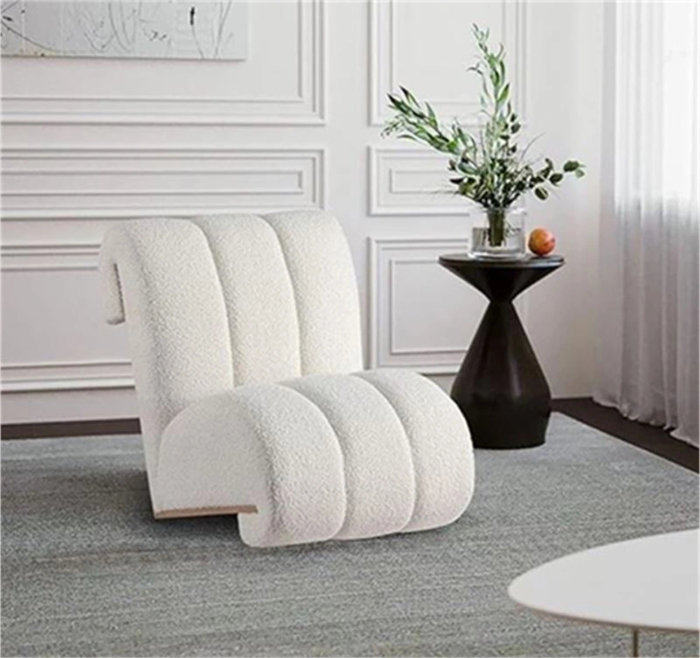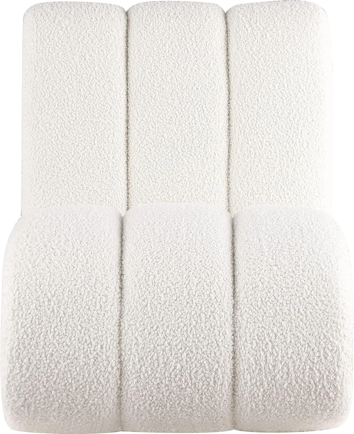 This stylish boucle accent chair is perfect for adding a touch of modern elegance to your living space. The soft, textured fabric and unique design make it a comfortable and eye-catching piece of furniture. Ideal for a reading nook or as a statement chair in your living room