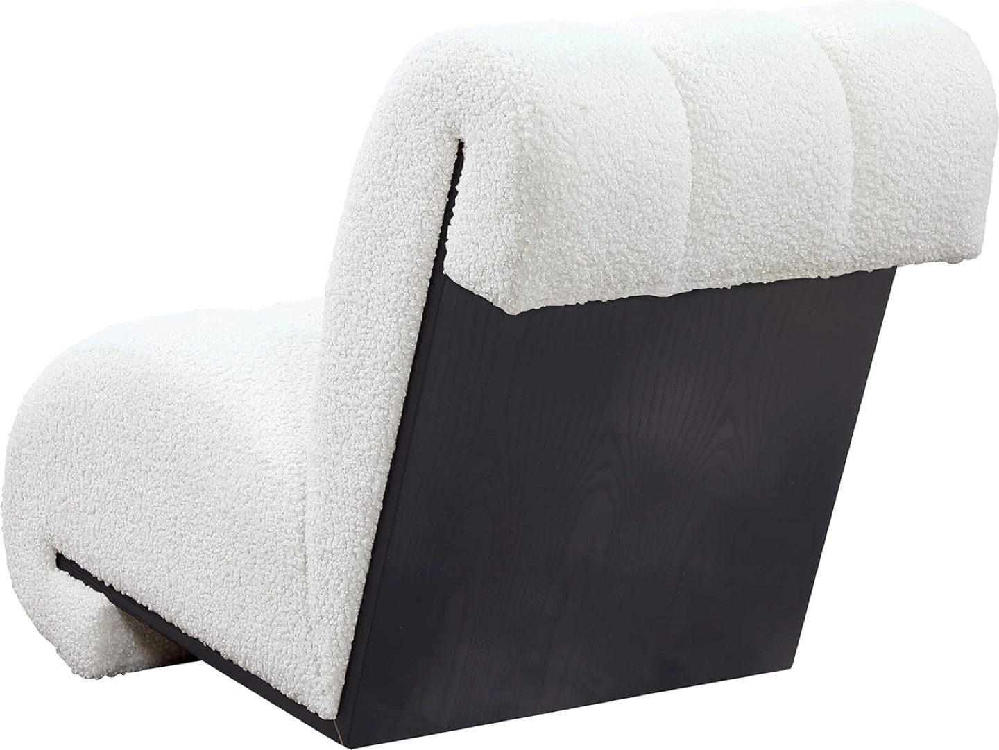 Meridian Abstract Swoon Accent Chair, White Shearling & Wood