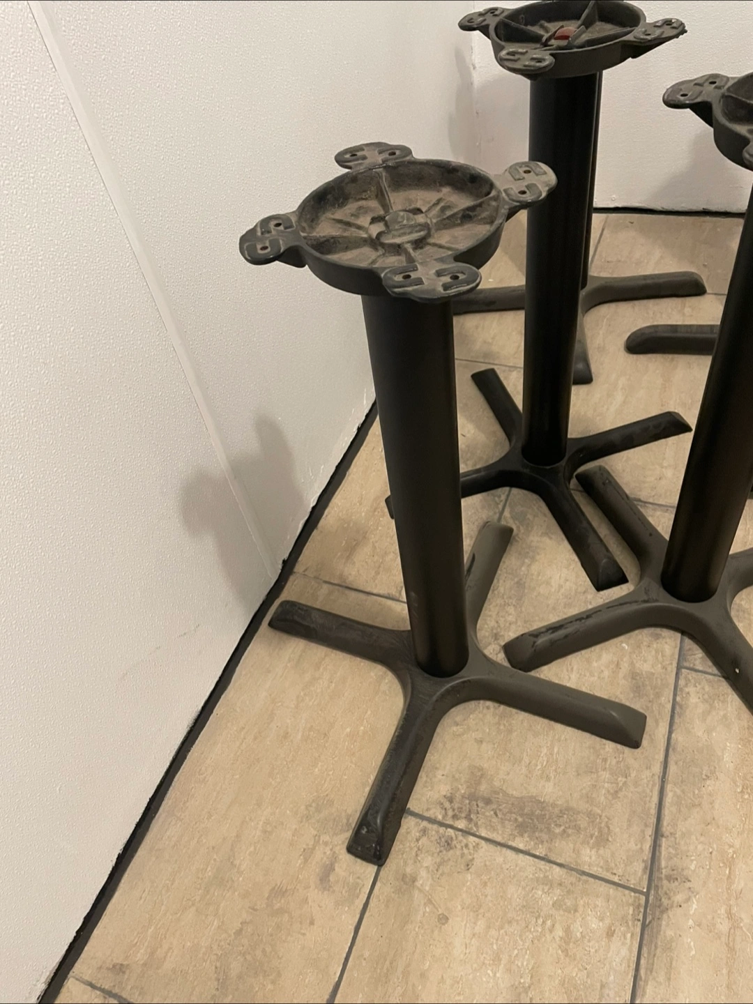 Selling a bunch of black restaurant metal table bases. They're sturdy and ready to be used in your restaurant or home. They show some signs of use but are still in good condition. 30 bases available. Buy as many as you need. As they sell I will change the number. Screws come with Finch and Keele.