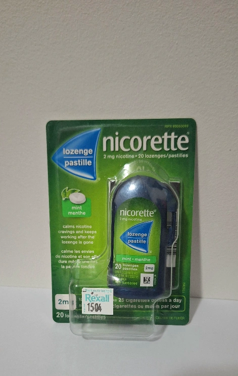 I'm selling a pack of Nicorette lozenges, 2mg nicotine, with a mint flavour. This package contains 20 lozenges/pastilles. It calms nicotine cravings and keeps working after the lozenge is gone. Comes in original packaging