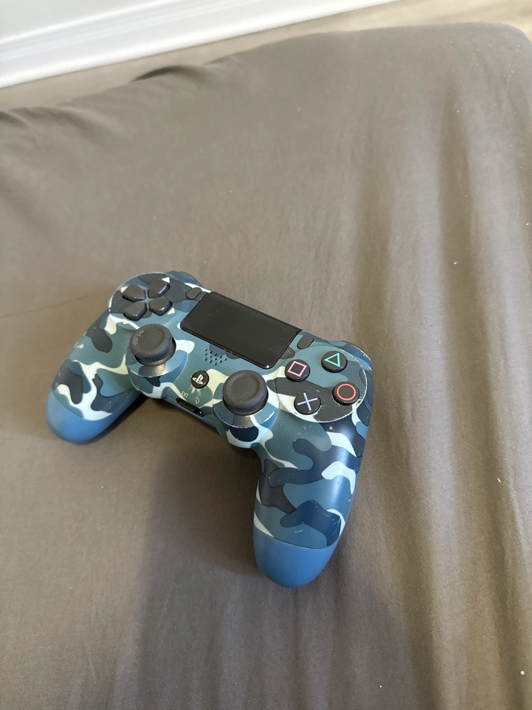 Selling a used Sony PlayStation 4 DualShock 4 controller in a cool blue camouflage design! It's in good condition and ready for a new gamer. Perfect for adding an extra controller to your setup or replacing a worn-out one