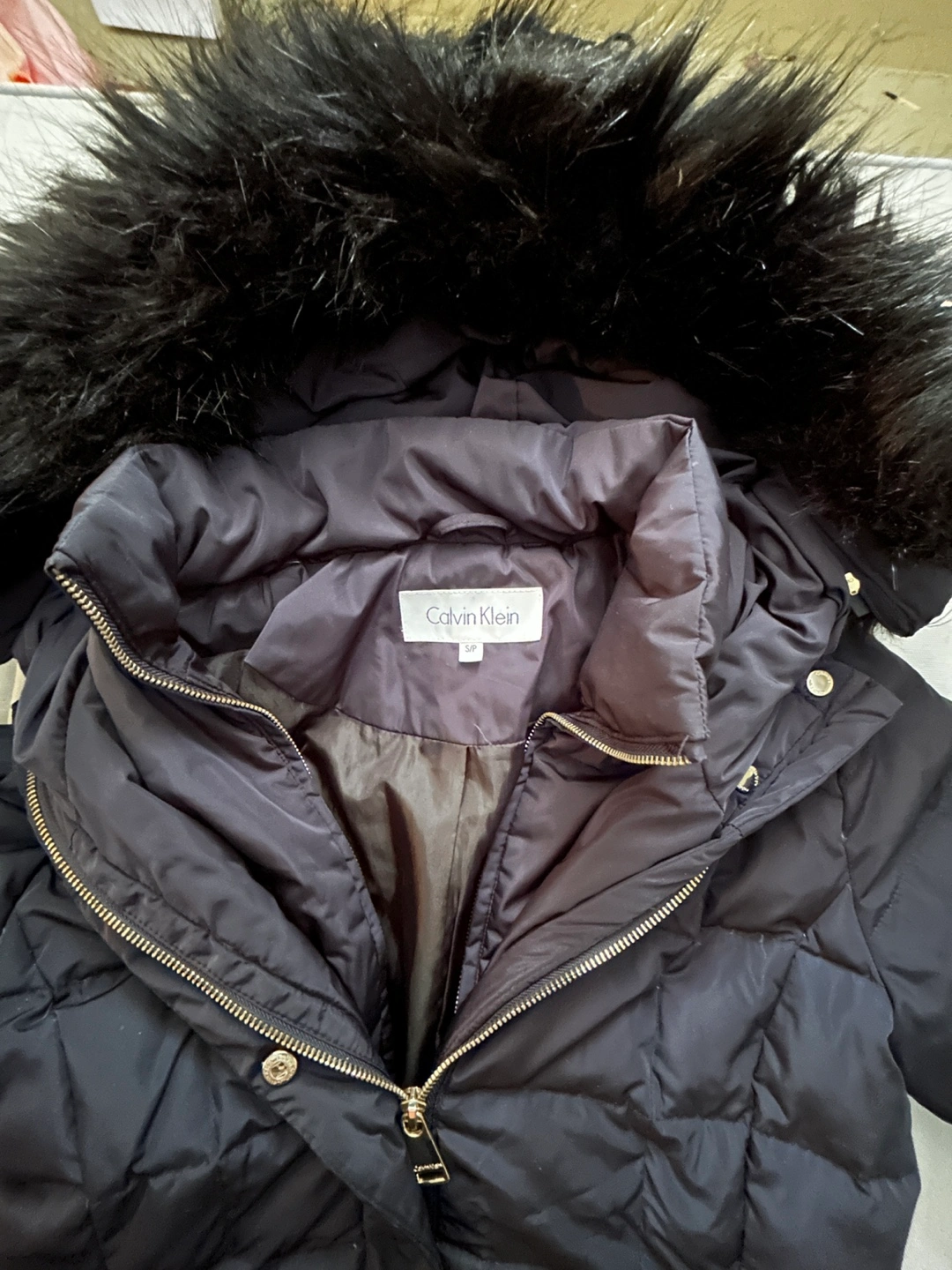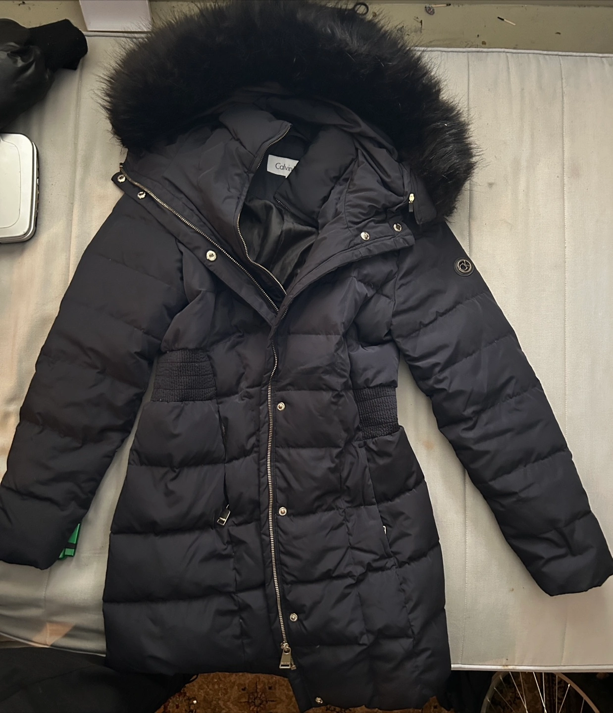 I'm selling a Calvin Klein black puffer coat. It's in great condition and perfect for the cold weather! It's a stylish and warm addition to your wardrobe
