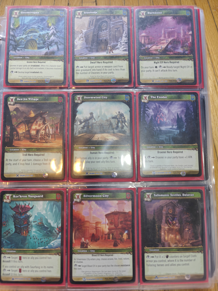 Selling World of Warcraft Trading Card Game (TCG) cards! Various heroes, villains , and locations are featured. Great for WOW collectors.