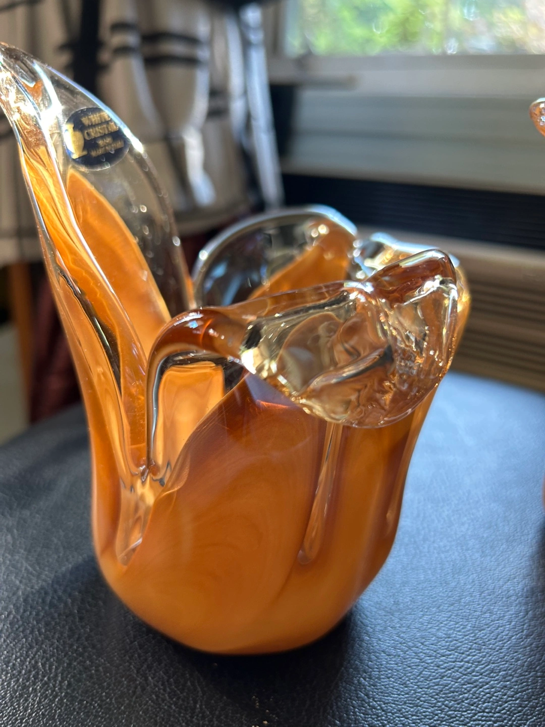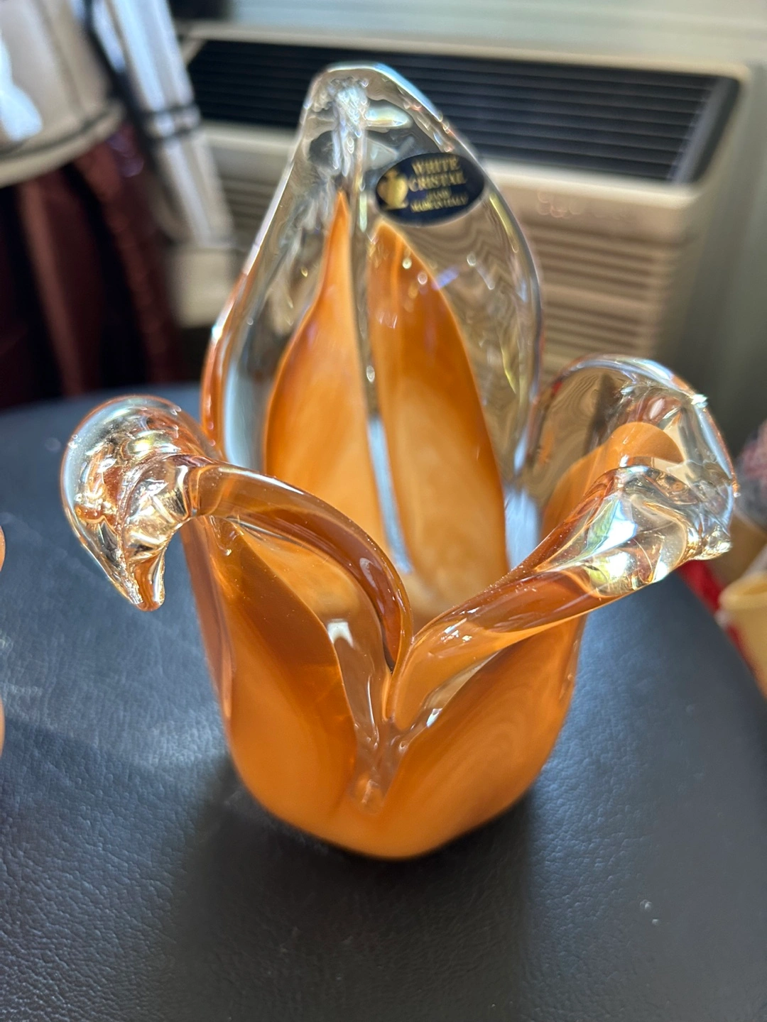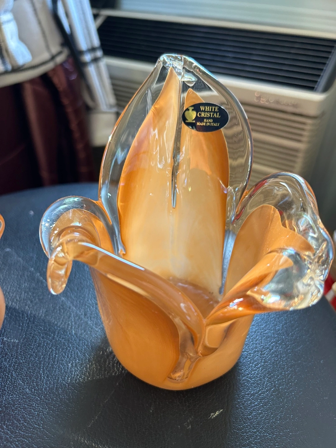 Selling a beautiful Murano White Cristal Italy art glass vase. It's a unique piece that would look great in any home