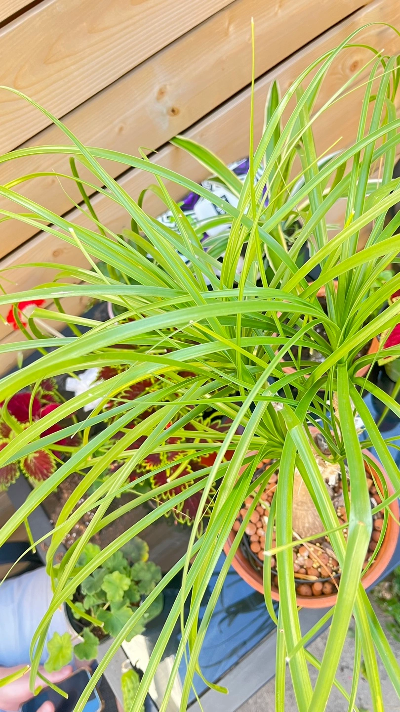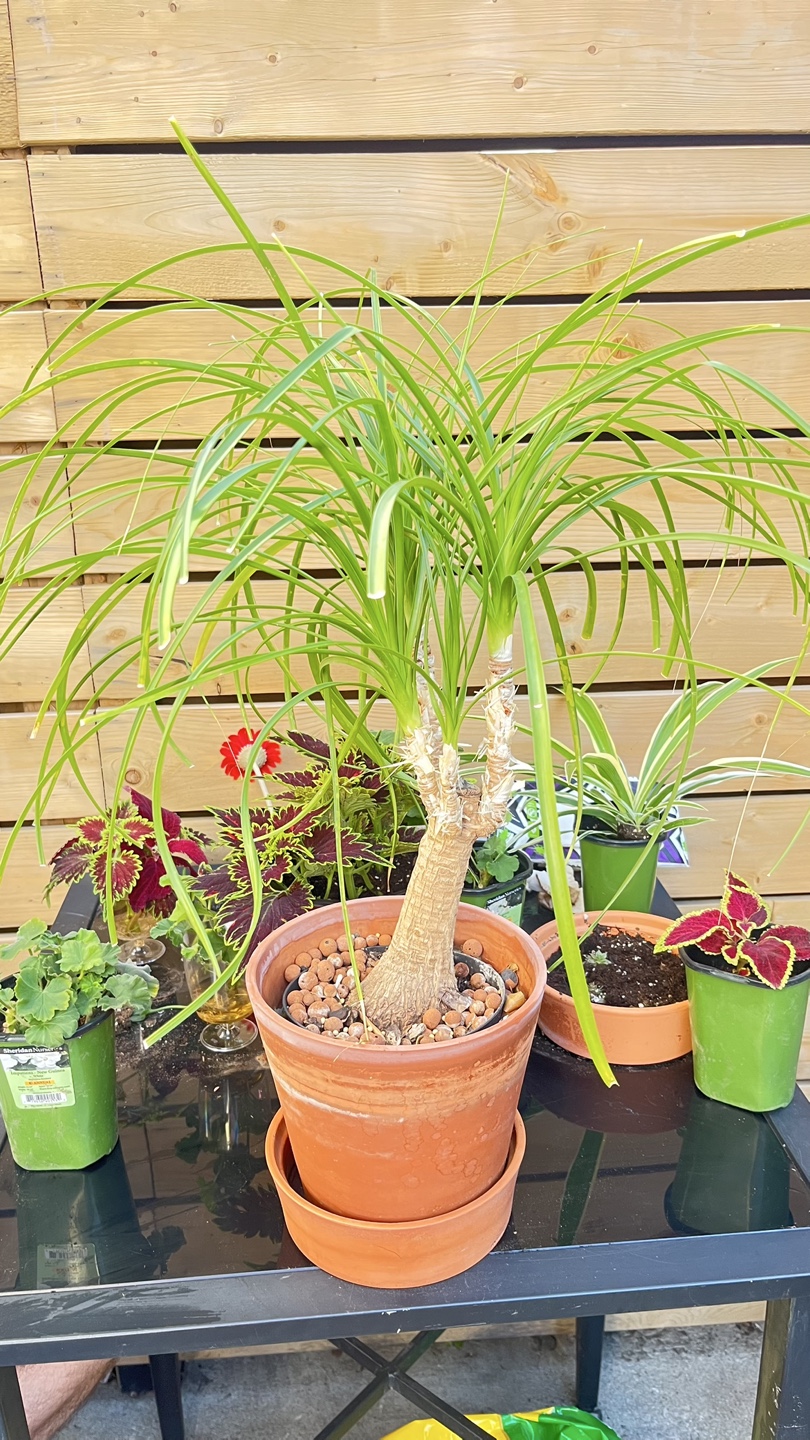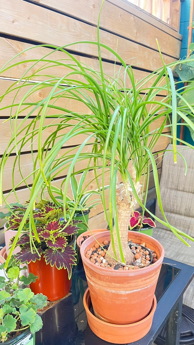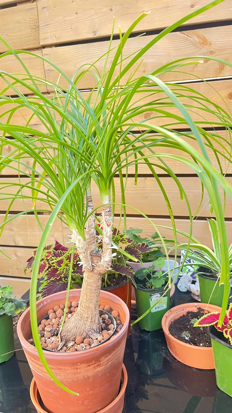 Selling a healthy ponytail palm, potted in a terracotta pot. It's a lovely plant that's easy to care for and adds a touch of green to any space! The pot has a nice, earthy tone that complements the plant well