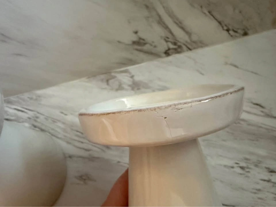 Crate & Barrel Marin ceramic candle holders - can hold tapered or pillar candles. Sold out.