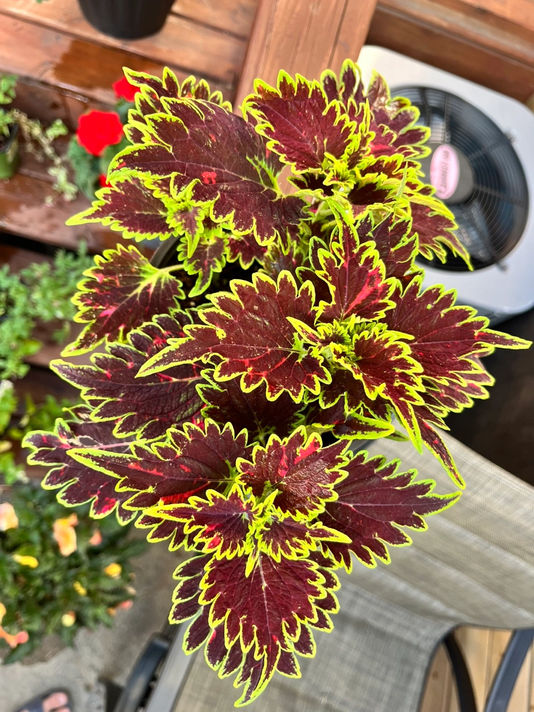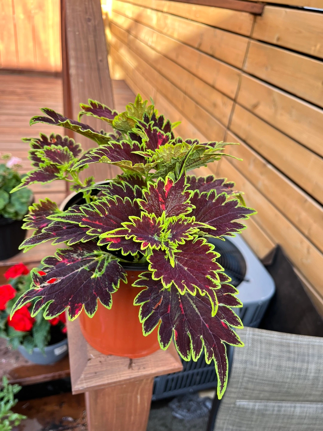 Selling a vibrant Coleus plant! It has beautiful burgundy and green leaves. Perfect for adding a pop of colour to your garden or indoor space