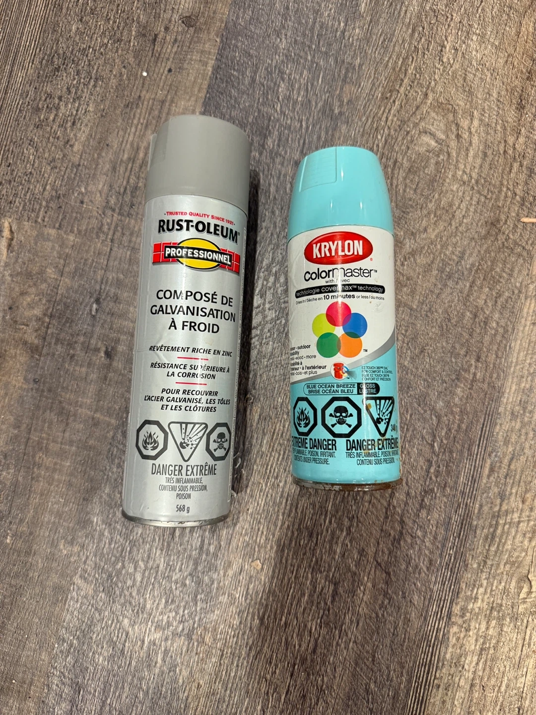 Selling two cans of spray paint: one Rust-Oleum Professional Cold Galvanizing Compound and one Krylon ColorMaster in Blue Ocean Breeze. Both cans are full and ready to use for your next project!