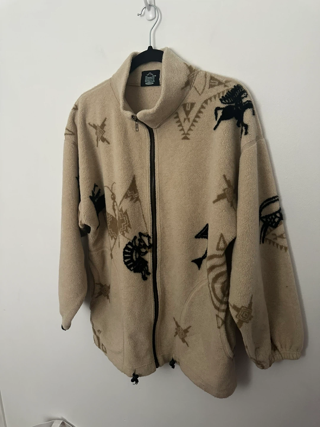 Vintage EzzE Fleece Jacket Indigenous Design Neutral Cozy