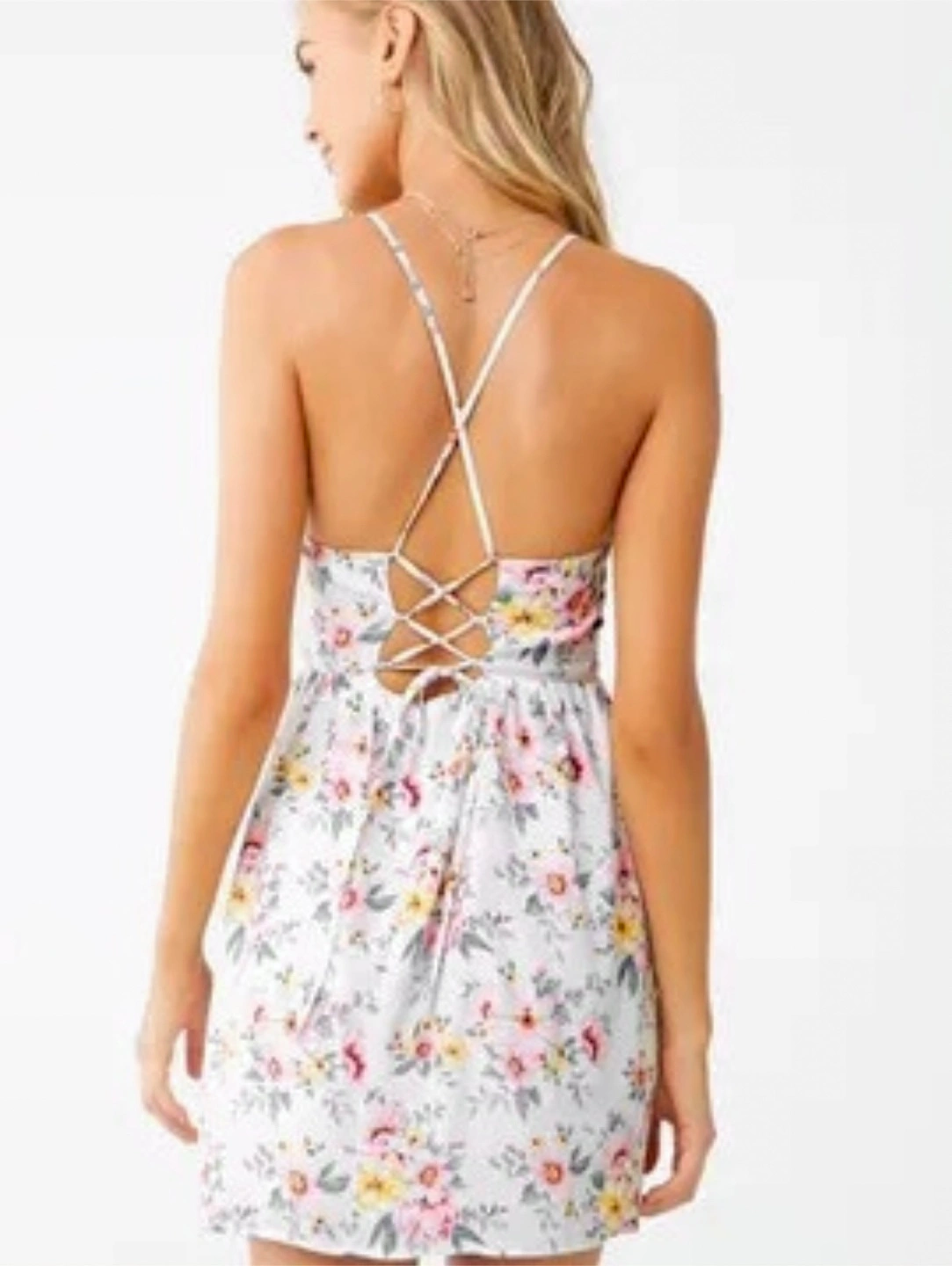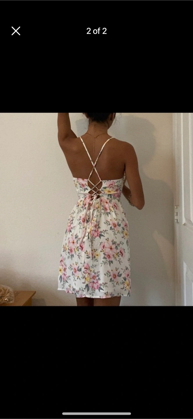 Very pretty summer dress with cute open Back. It is size M but will fit also S because the back is adjustable as you need. New.