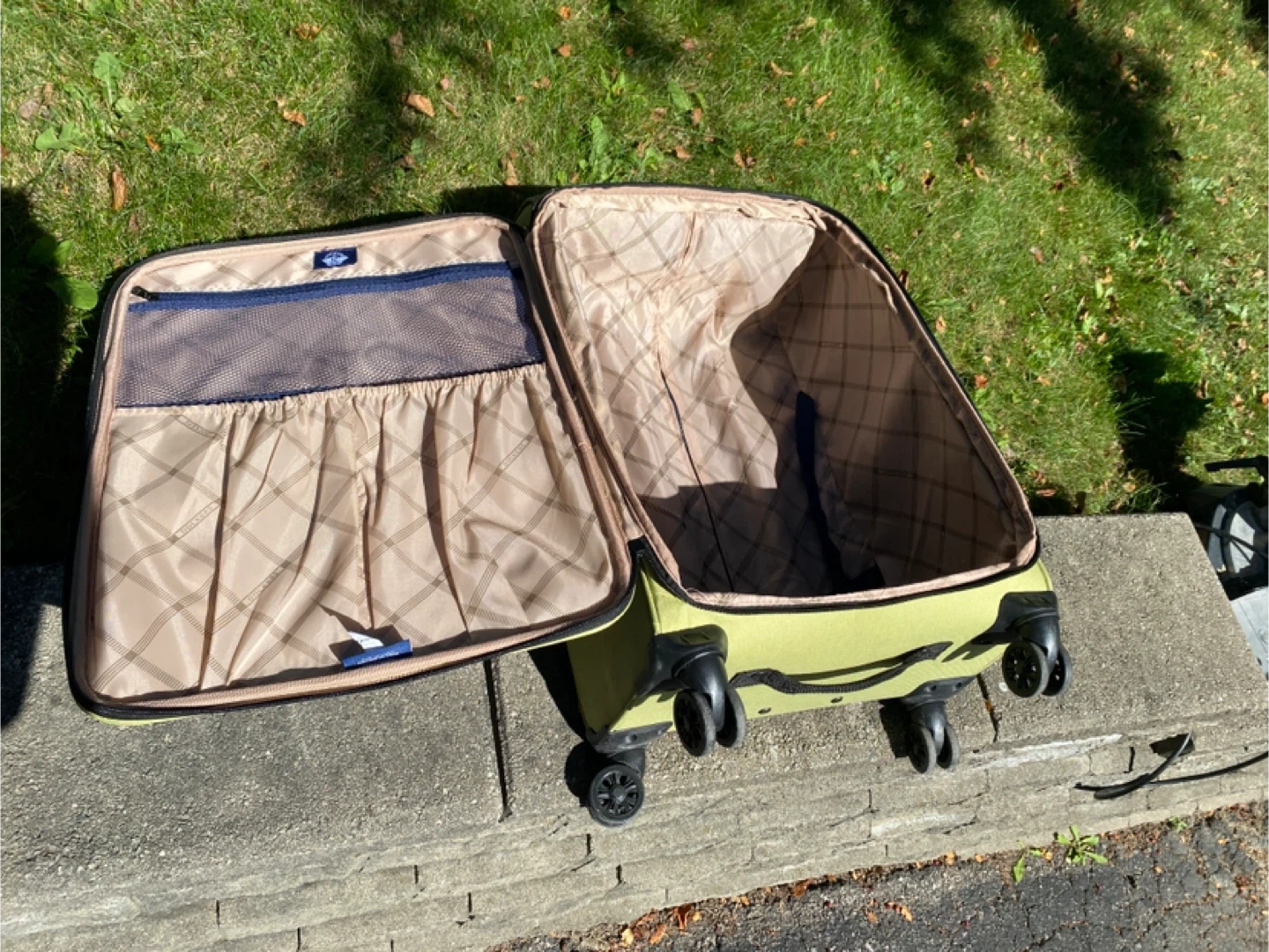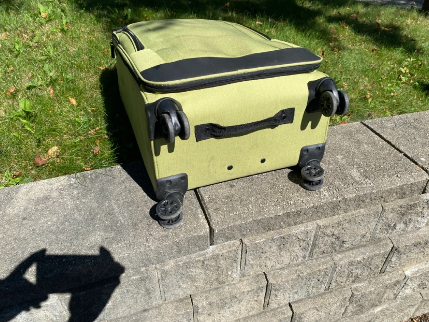 Looking to sell this green rolling suitcase. It's in great shape and ready for your next adventure! It has a retractable handle and smooth-rolling wheels for easy transport. Zippers work well. Clean and only used handful of times. DOCKERS brand. Expandable with a zipper for an additional 1-2" width. Size: 11"x17"x27". I have other sizes available, see photo.