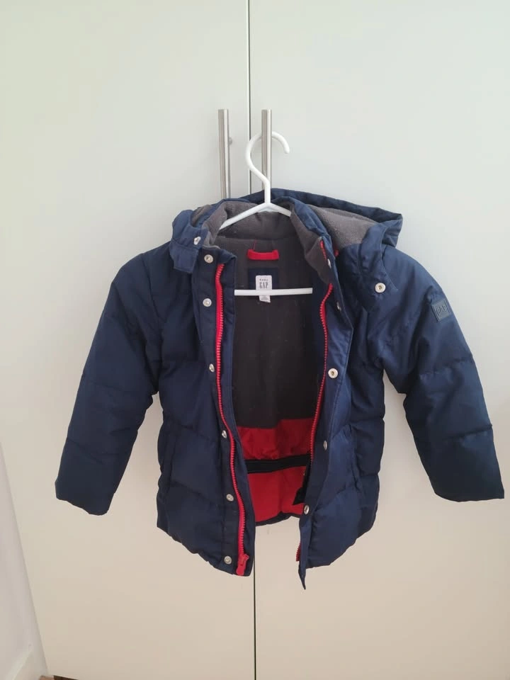 Selling a Gap down fill winter jacket/coat - size 5T. This jacket is water repellent, has storm cuffs and a removable hood. Comes from a smoke & pet free home.