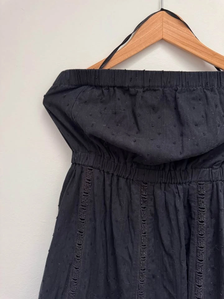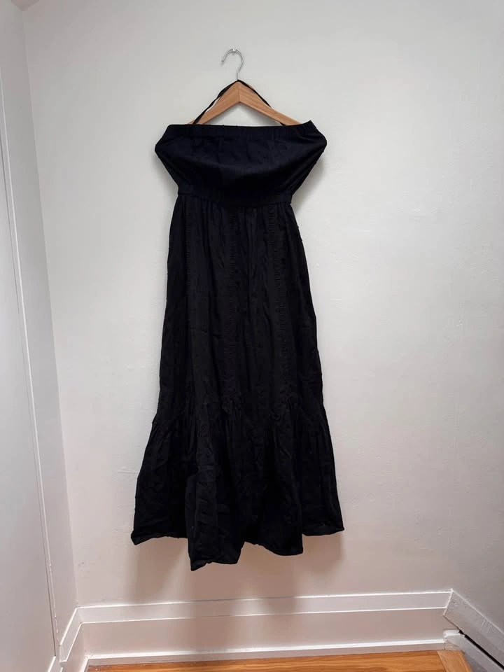 Gap Women’s Black Eyelet strapless Maxi Dress, size small. Lightweight with beautiful eyelet detailing, you can’t resist the lovely texture. Throw on your favorite sandals for a beachy-chic look. High quality woven cotton dress with embroidery and eyelet detailing throughout. Smocked straight neckline. Shirred at smocked waist. Layered skirt. Maxi length. 100% cotton.