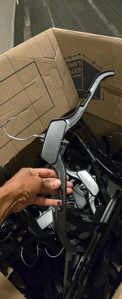 FREE!!! ๐๐๐ About 50 or so black plastic clothes hangers with metal hanger, some have rubber on edges but some do not. All are working, no cracks or anything, we just don'tneed anymore after downsizing our closets. Ready for a new home!