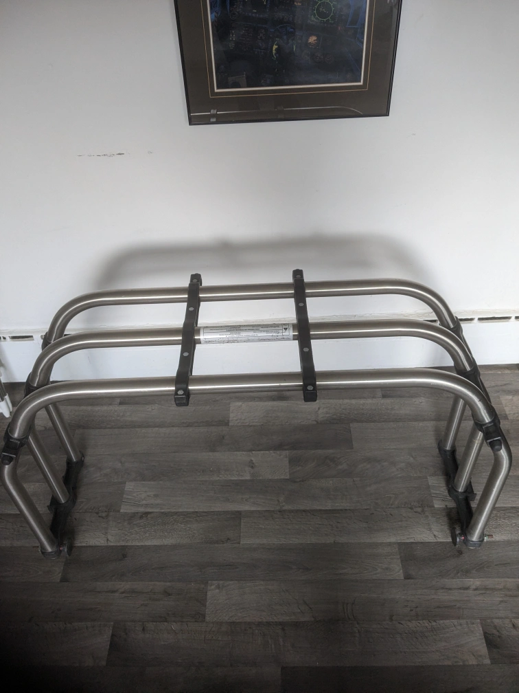 Selling a truck bed extender rack in silver colour. It's in great shape and ready to be installed on your truck. Perfect for carrying ladders, lumber, or other long items. It's a sturdy and reliable rack that will help you get the job done