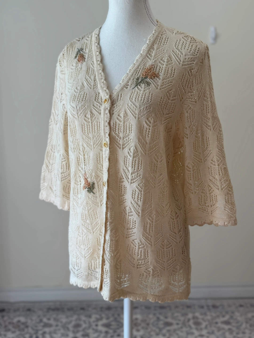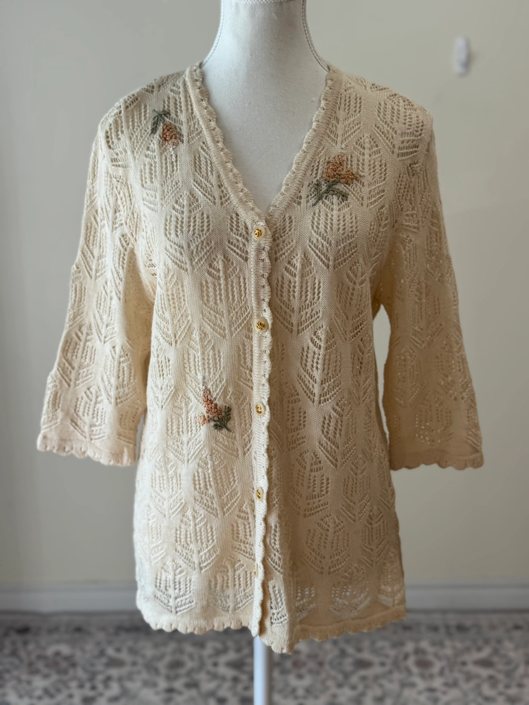 Vintage Crochet Knit Cotton Linen Floral Cardigan