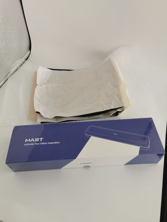 New Mast Portable Tattoo Printer ZY007 in white, featuring a 2500mAh battery, thermal transfer printing, and a 210mm print width with Bluetooth and USB connectivity for easy tattoo stencil creation. Never been opened! This printer is a game-changer for tattoo artists looking for convenience and precision. Specifications: * Product Model: ZY007 * Colour: White * Battery Capacity: 2500mAh * Printing Method: Thermal Transfer * Print Width: 210mm * Power Input: 5V==2A * Connection Mode: Bluetooth+USB Pickup at Bur Oak @ McCowan Markham, or at 70 Queens Wharf Rd, downtown Toronto around noon most of Sundays