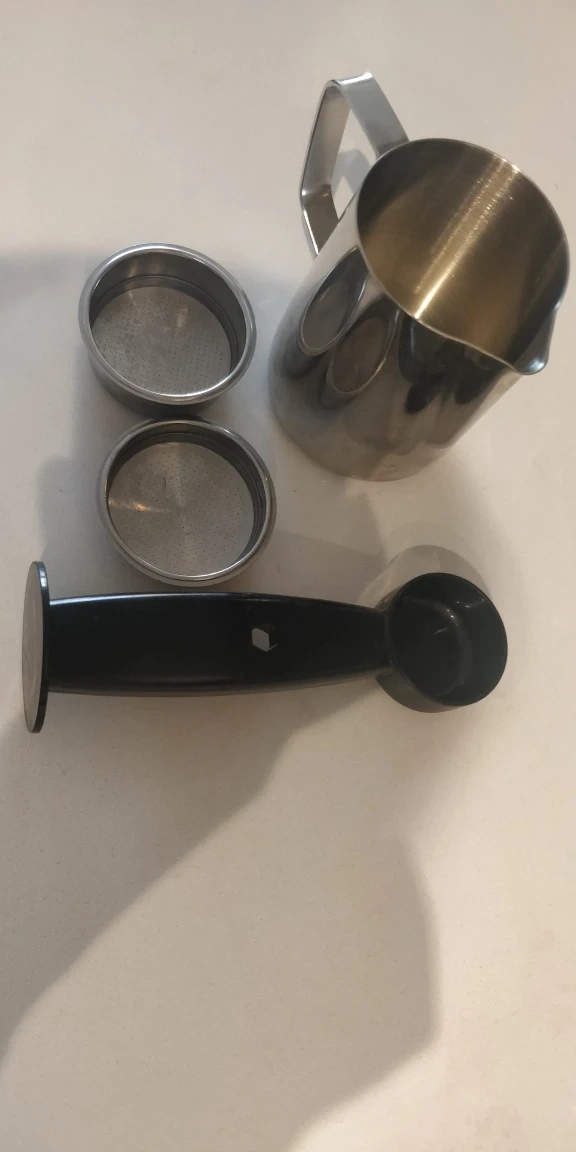 Portafilter not included (I accidentally washed it in dishwasher and it is leaving a black residue after that), hence it is not on sale, if you want it, will give away.