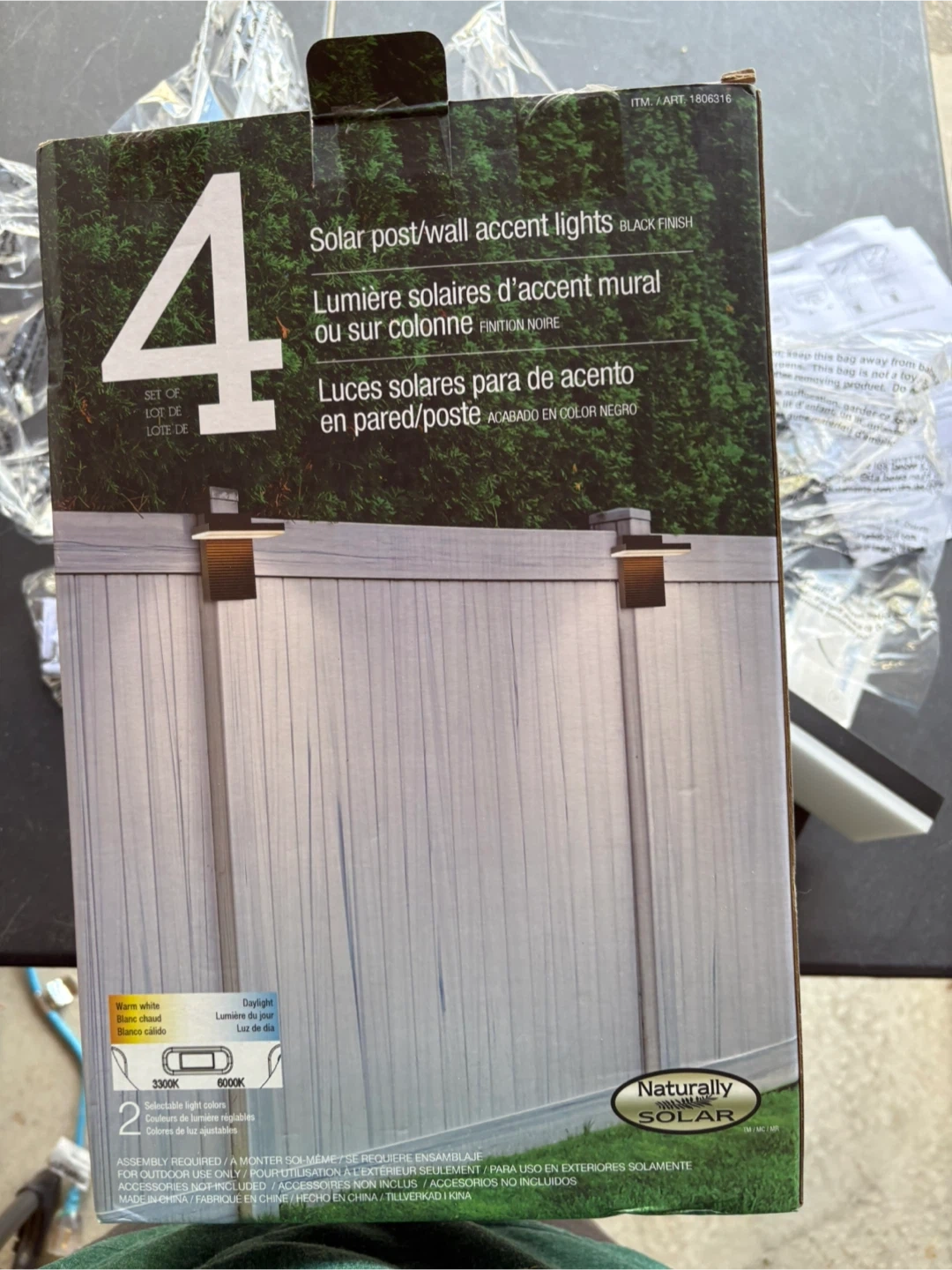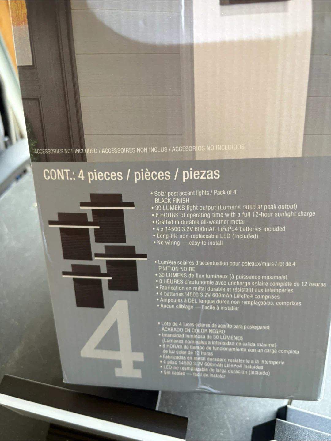 Description Naturally Solar decorative wall/post lights are designed to beautifully illuminate your garden, patio, fence, or walls. They charge during the day using solar energy and automatically turn on at night. 🔹 Features: • Set includes: 4 solar wall/post lights • Selectable light colors: 3300K warm white or 6000K cool white • Dimensions: 14.5 cm (W) x 14.5 cm (H) x 8.9 cm (D) • Powered by rechargeable AA Ni-MH battery (included) • Requires 8–12 hours of direct sunlight for the first full charge • Weather-resistant, suitable for outdoor use • Automatic on/off function (charges during the day, lights up at night) • Easy to mount (pre-drilled holes for screws) 👉 Setup: Insert the rechargeable battery correctly, switch to 3300K or 6000K mode, and place the light in a sunny location