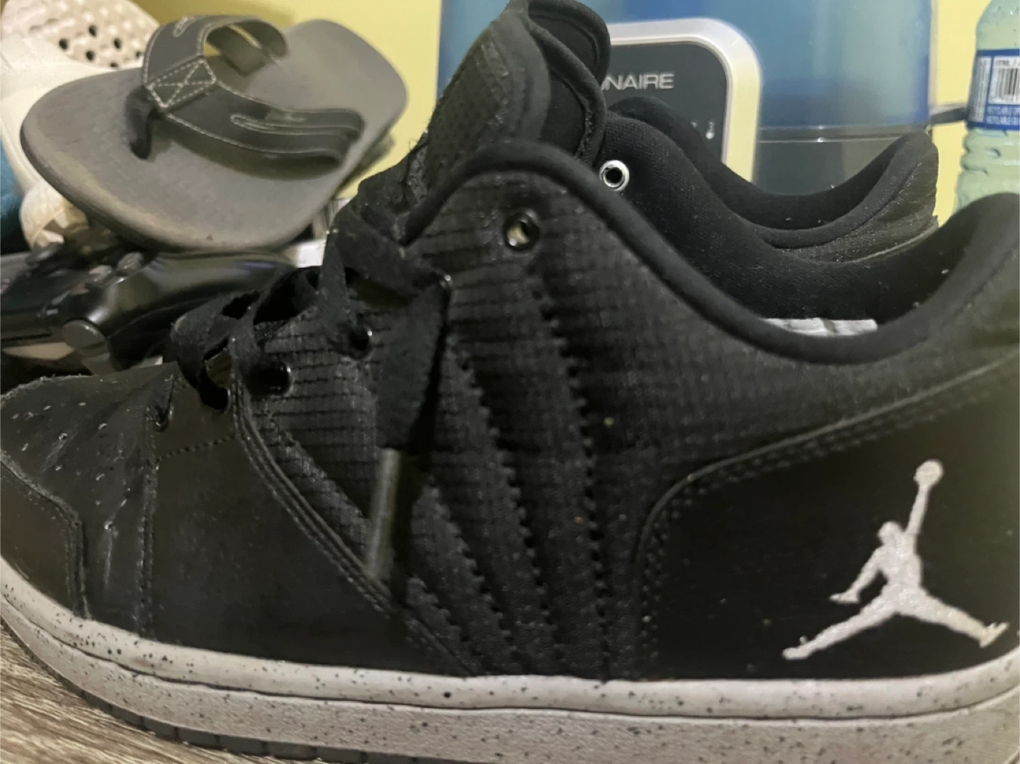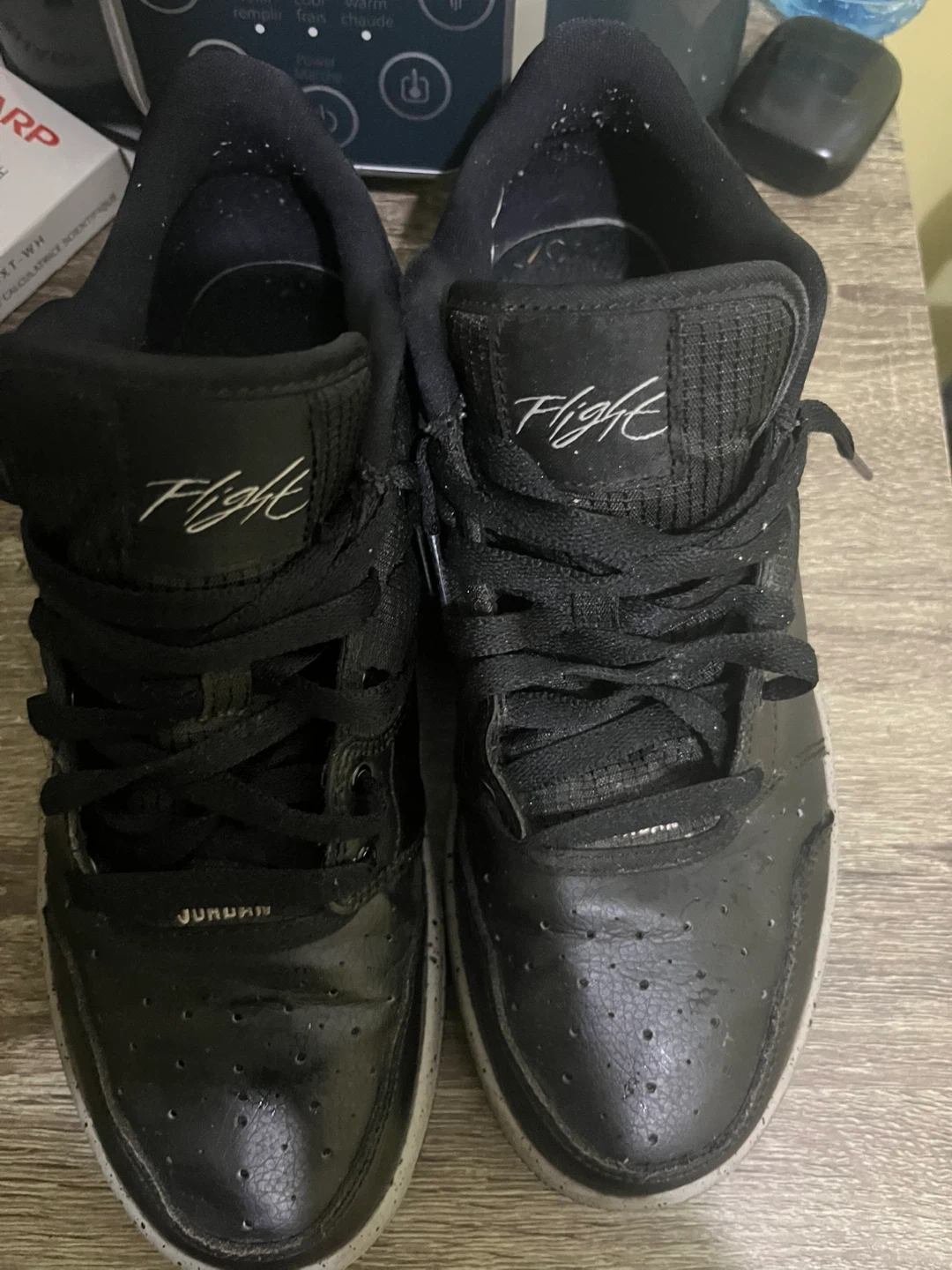 Selling a pair of Jordan Flight 45 High sneakers in size 8. They're black with the classic Jordan logo. In very good condition.