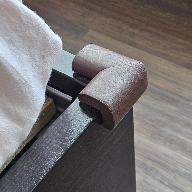 Great condition just a couple of marks from tape and peeling on one corner from removing the corner safely cushion for babies.