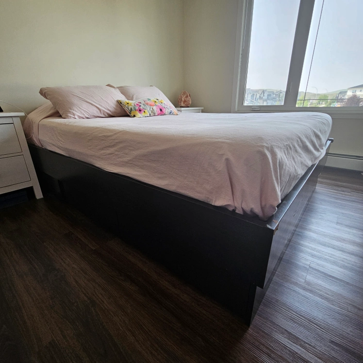 Queen IKEA bed frame with 4 drawers for storage