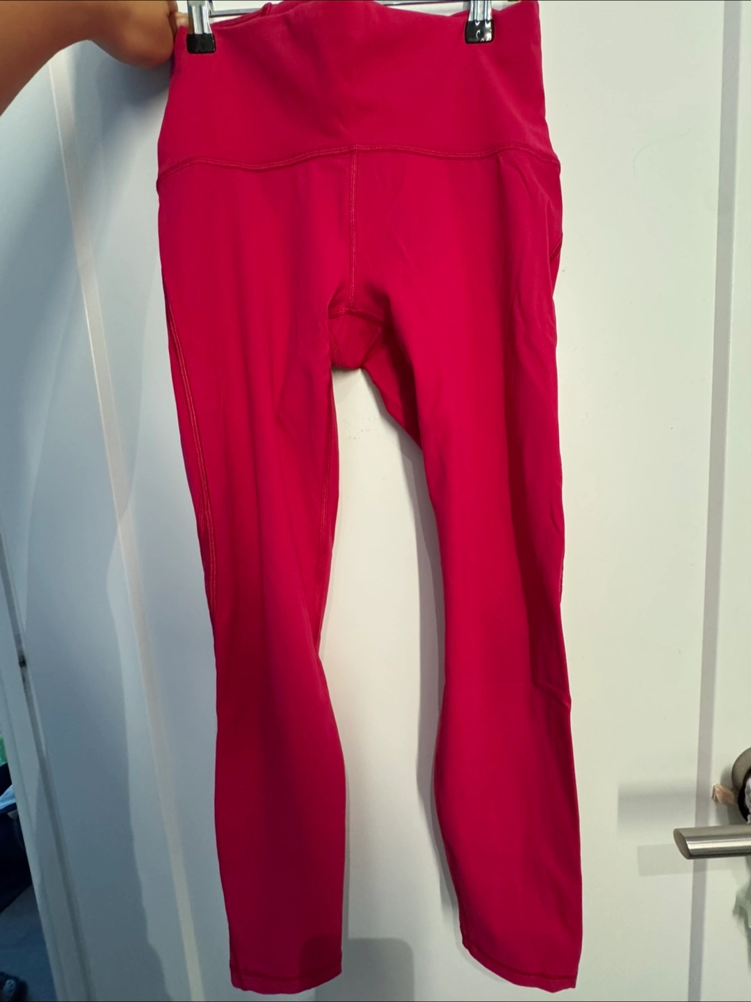 364Selling a pair of high rise Lululemon leggings in Calypso pink! They're a size 6 and feature mesh detailing on the lower legs and a back pocket on the inside of the waistband. The material is full on luxtreme.