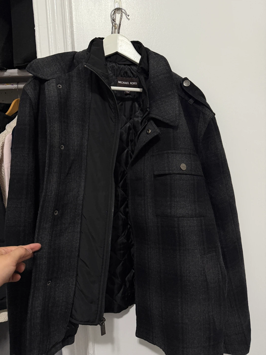 Buy & SellMichael Kors Gray Plaid Wool Blend Jacket XLMichael Kors Gray Plaid Wool Blend Jacket XL$10This is a Michael Kors jacket in size XL. It's a gray plaid wool blend with a quilted lining. Perfect for fall!ConditionLike newSizeXlBrandMichael korsWHERE TO MEETTrain stationView MapSELLERverifiedJulioSunset Park965 reviews2 chats·1 favorites·67 viewsSEND CHAT TO SELLERHi Julio! I’m interested in your listing.Hi Julio! I’m interested in your listing.Get the Karrot app to chatSign In to chat