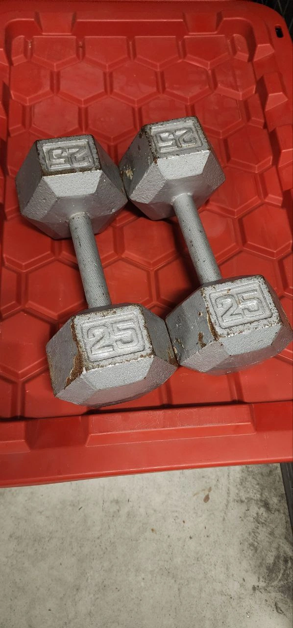 404Selling a pair of 25lb dumbbells. They show some signs of use, but they are still in good working condition for your workouts