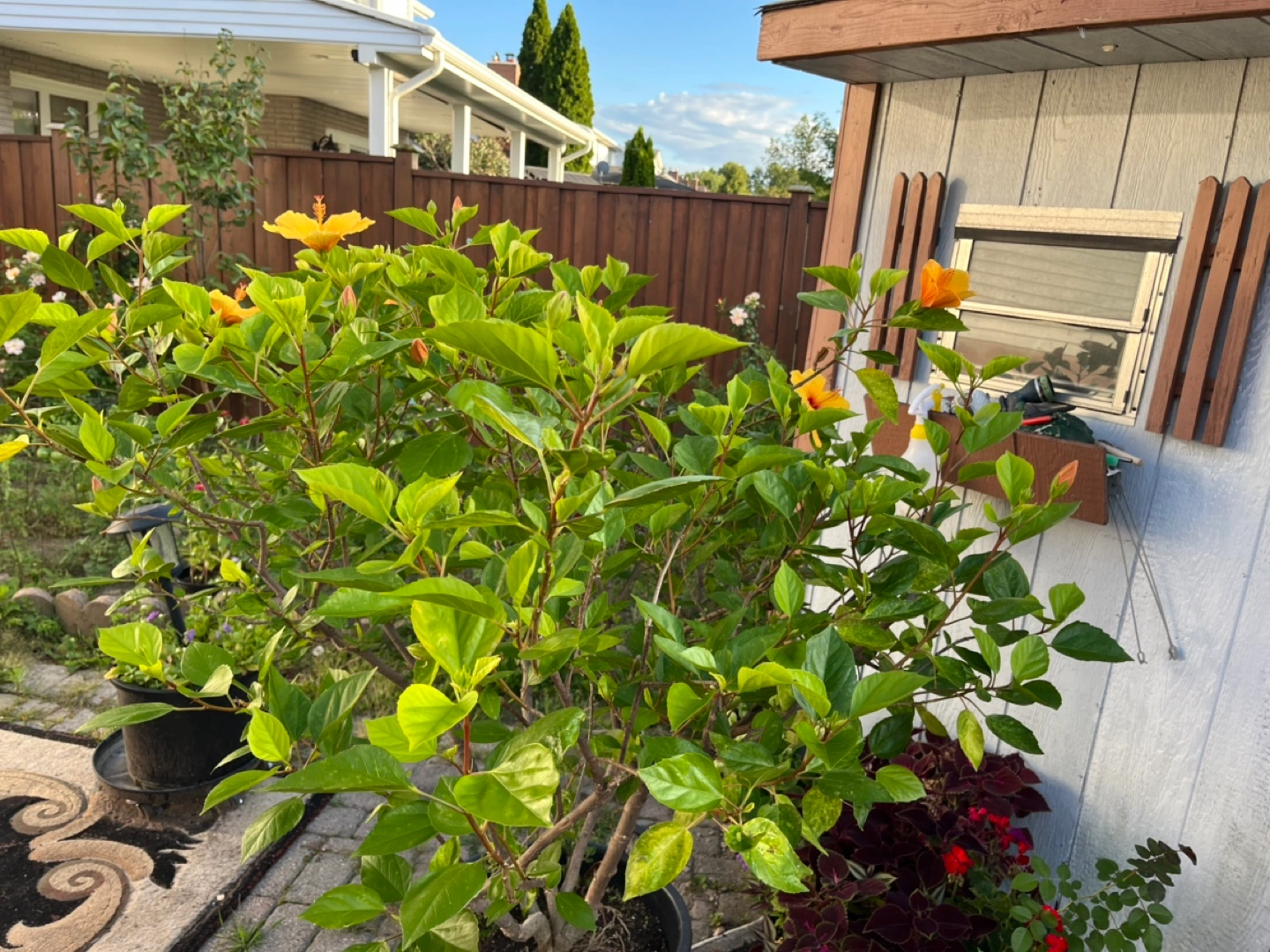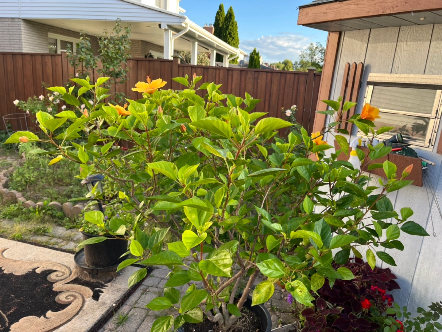Huge hibiscus plant in a pot! It's currently about 56 inches tall. It would be a wonderful addition to any garden or patio It was blooming indoor during winter time. I just don’t have space for it.
