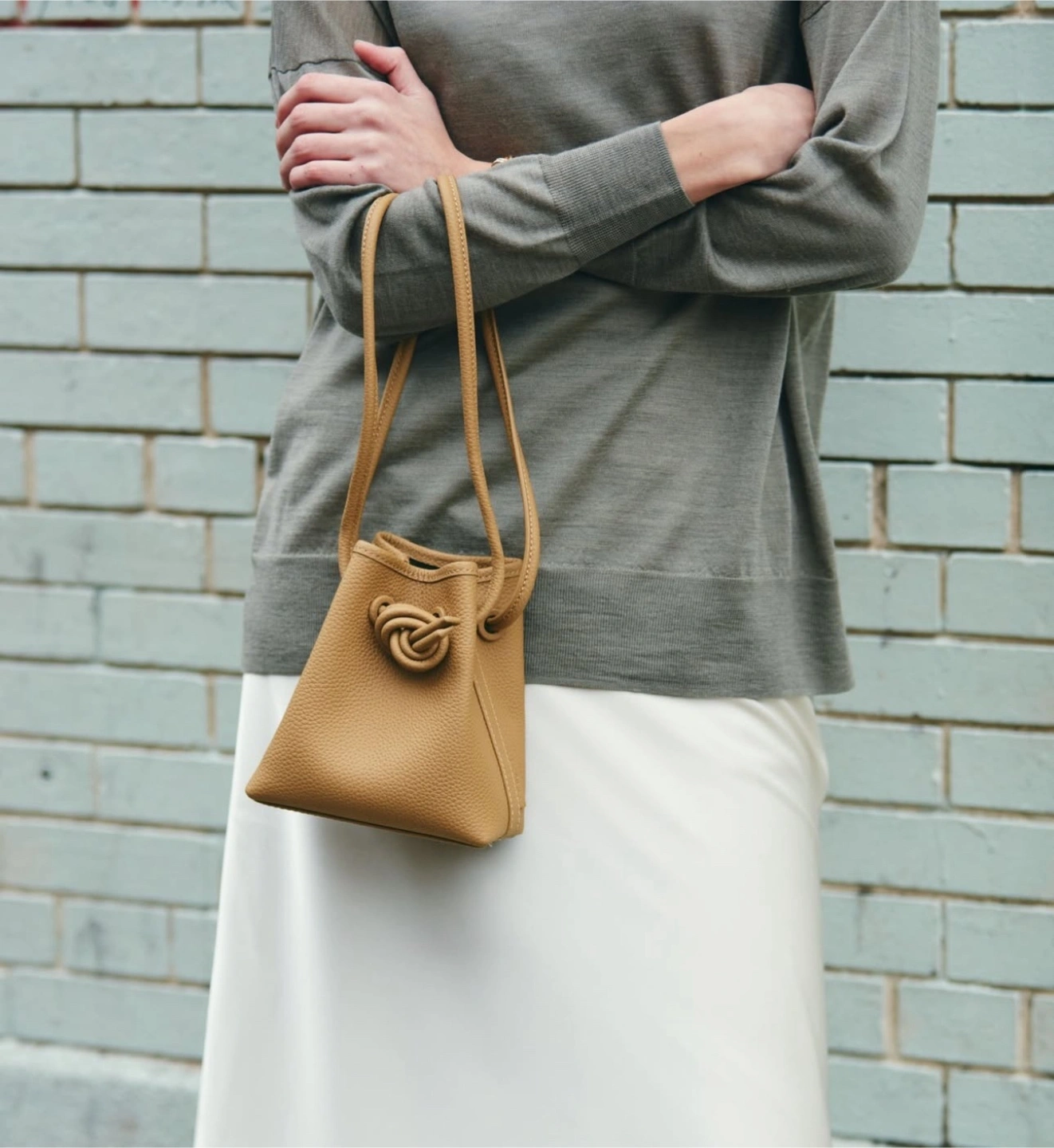 Super cute mini bag with a unique knot detail! It’s a tan colour and made of leather. Perfect for everyday use or a night out. Comes with its original dust bag!