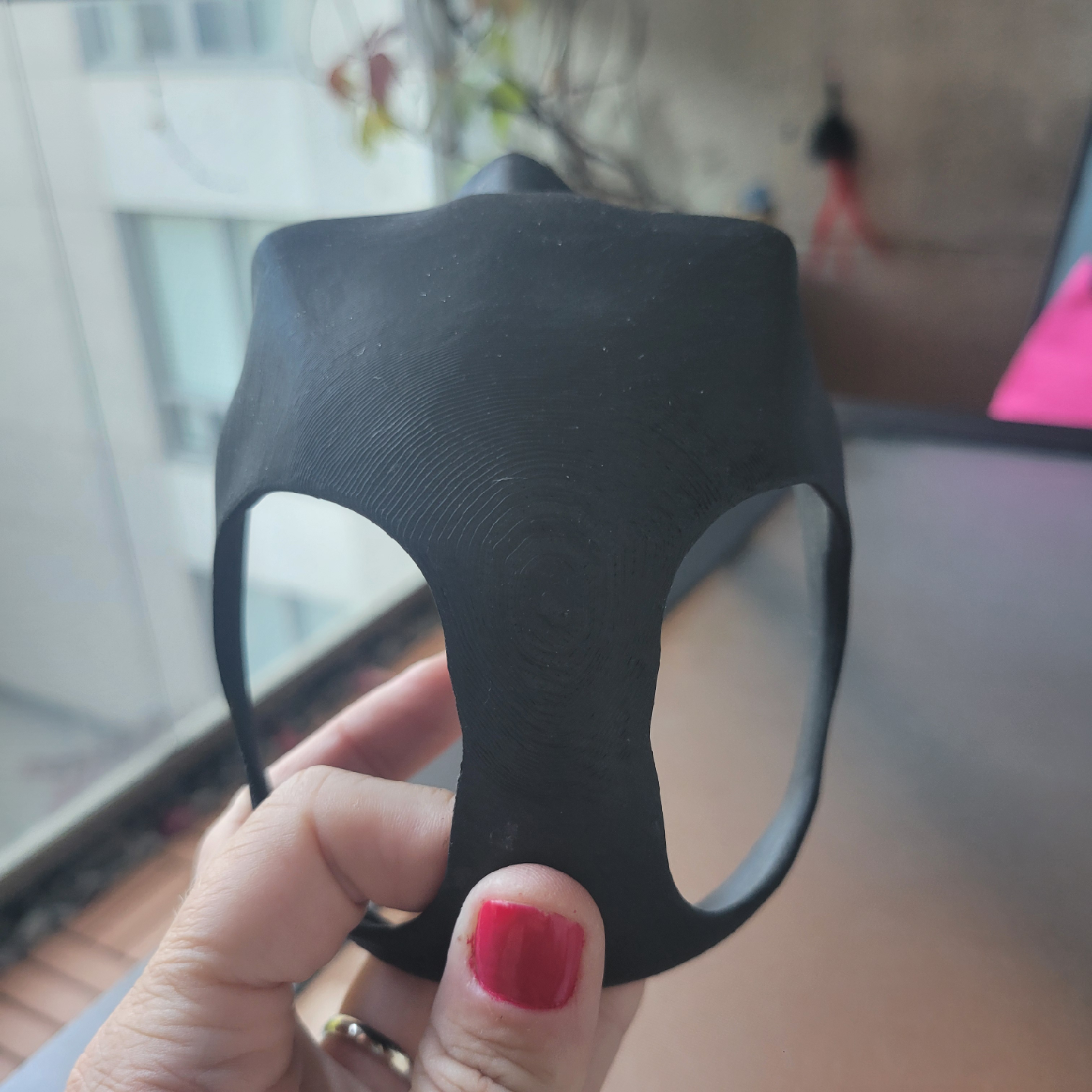 3d printed Batman mask for a large cat or small dog. Too large for my tabby otherwise, she would be Batman. It's 3 3/4 inches wide and 4 1/4 inches long.