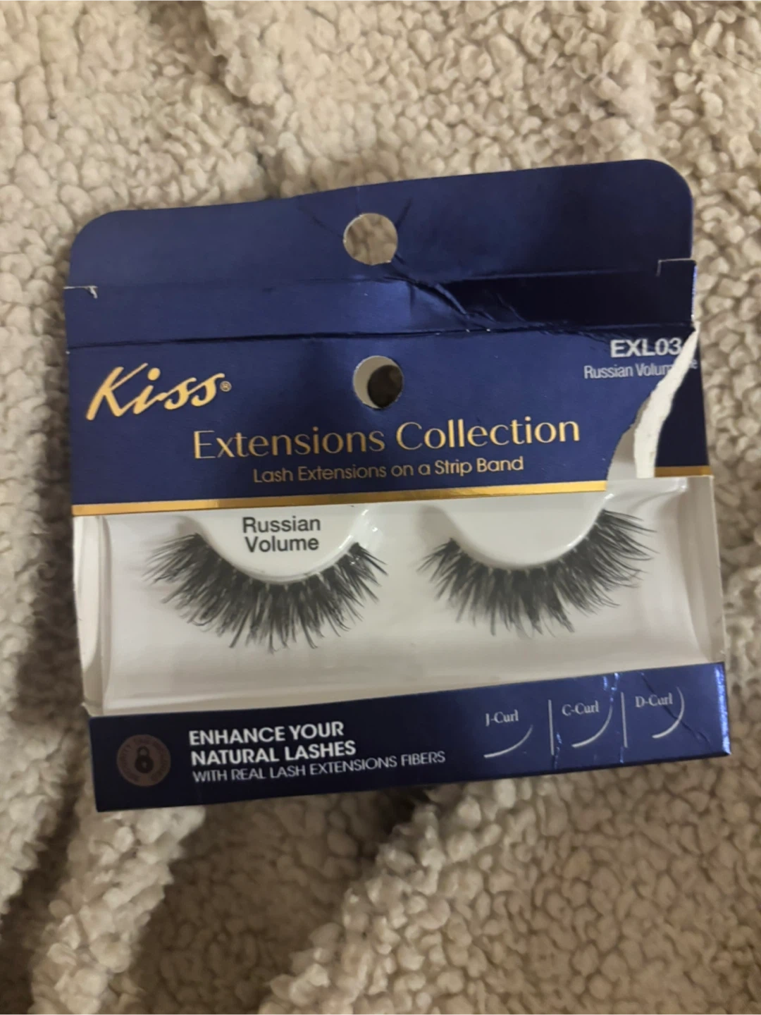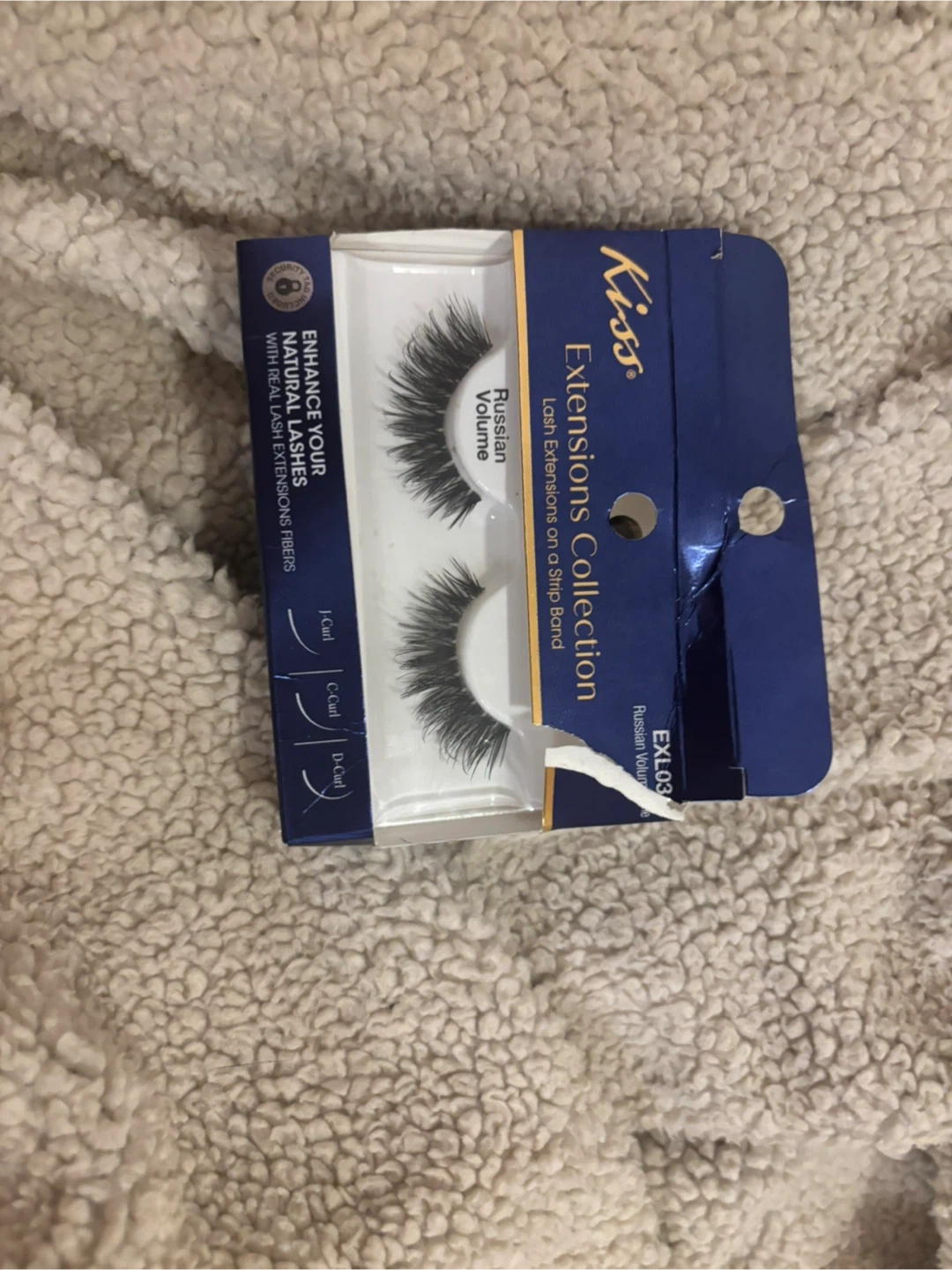 Selling a set of Kiss Extensions Collection false eyelashes in the Russian Volume style! These are lash extensions on a strip band, designed to enhance your natural lashes with real lash extension fibers. Easy to apply and give a dramatic look!