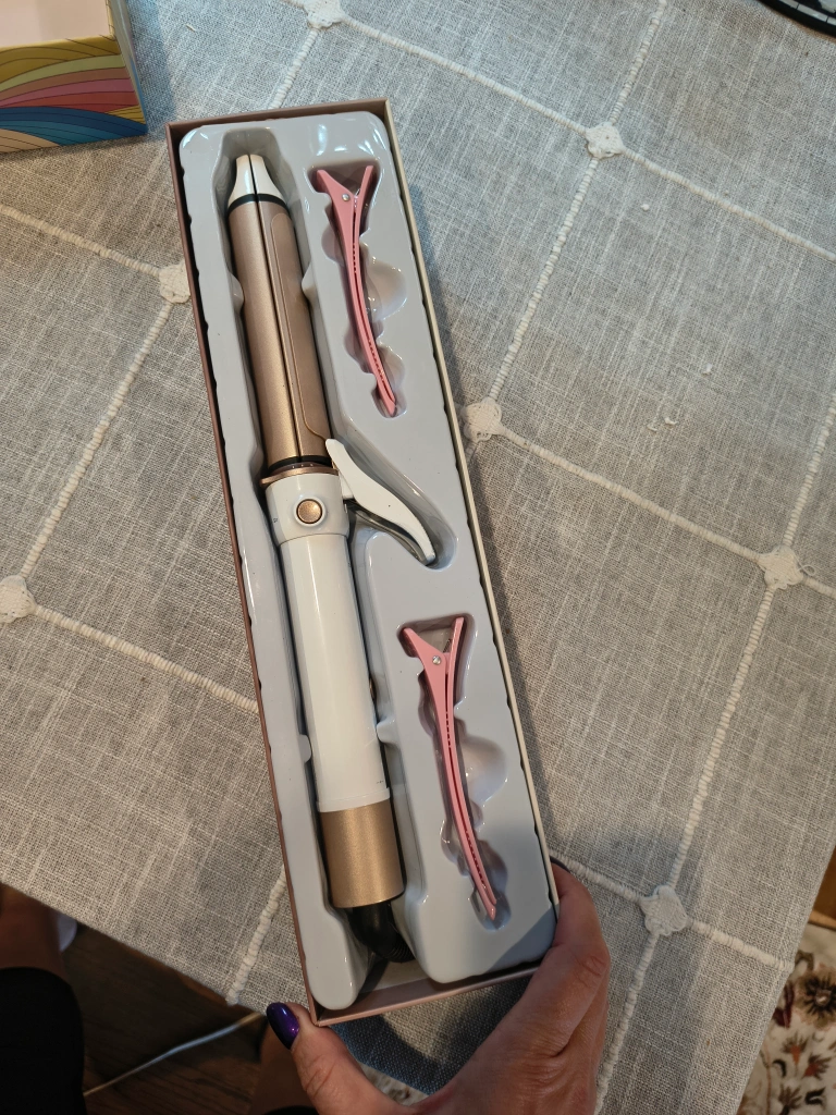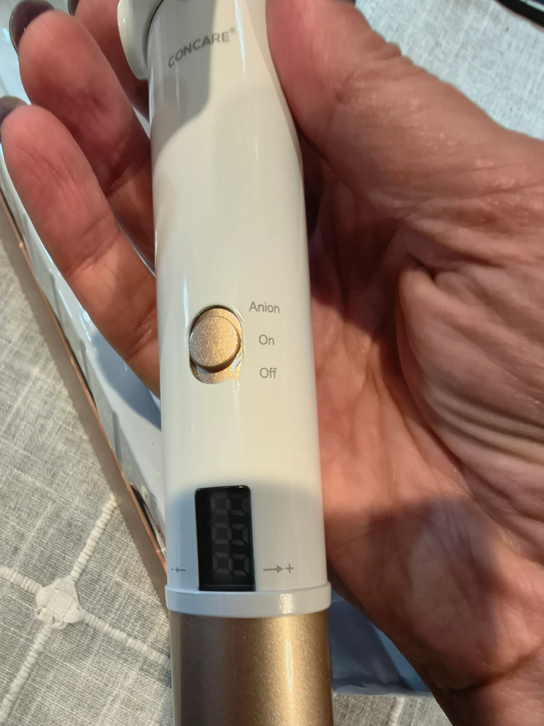 It features dual voltage and comes with an EU/UK plug adapter. The anti-scald design ensures safe and reliable use, and it has 12 temperature settings to suit different hair types. It also features oil-coated hair care for added protection