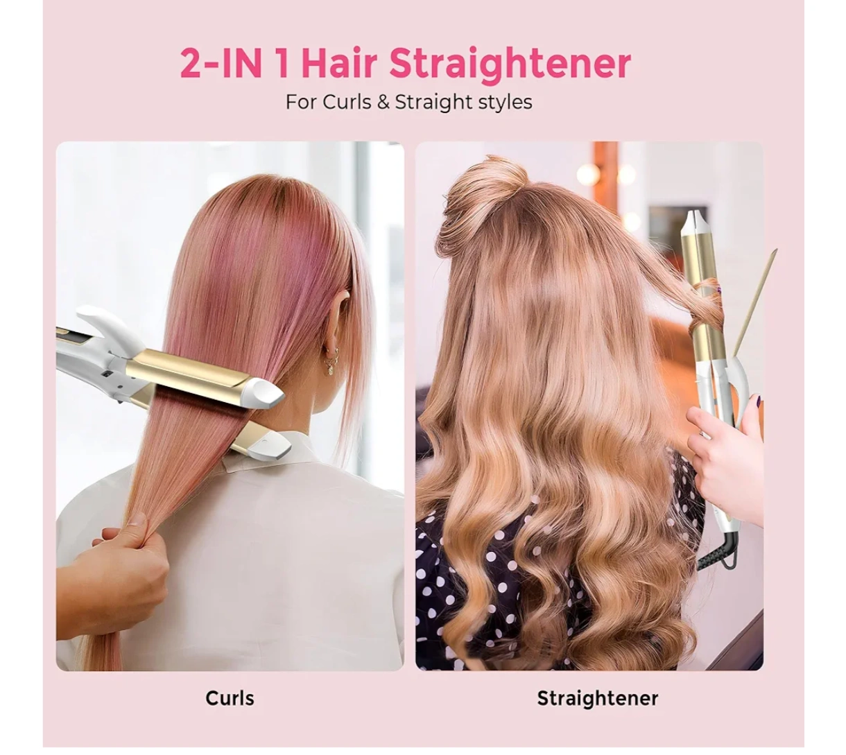 This 2-in-1 hair straightener is perfect for creating both curls and straight styles!