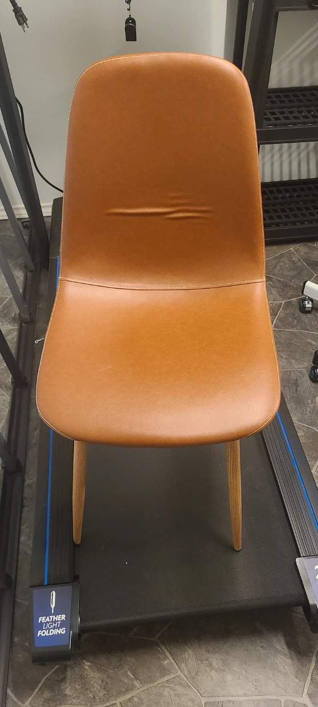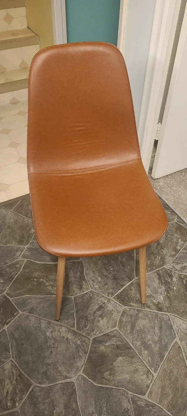 Looking to add some stylish seating to your dining area? I'm selling 2 brown faux leather dining chairs. They're in great shape and would look fantastic around any table! The faux leather is easy to clean and the wooden legs provide a sturdy base.