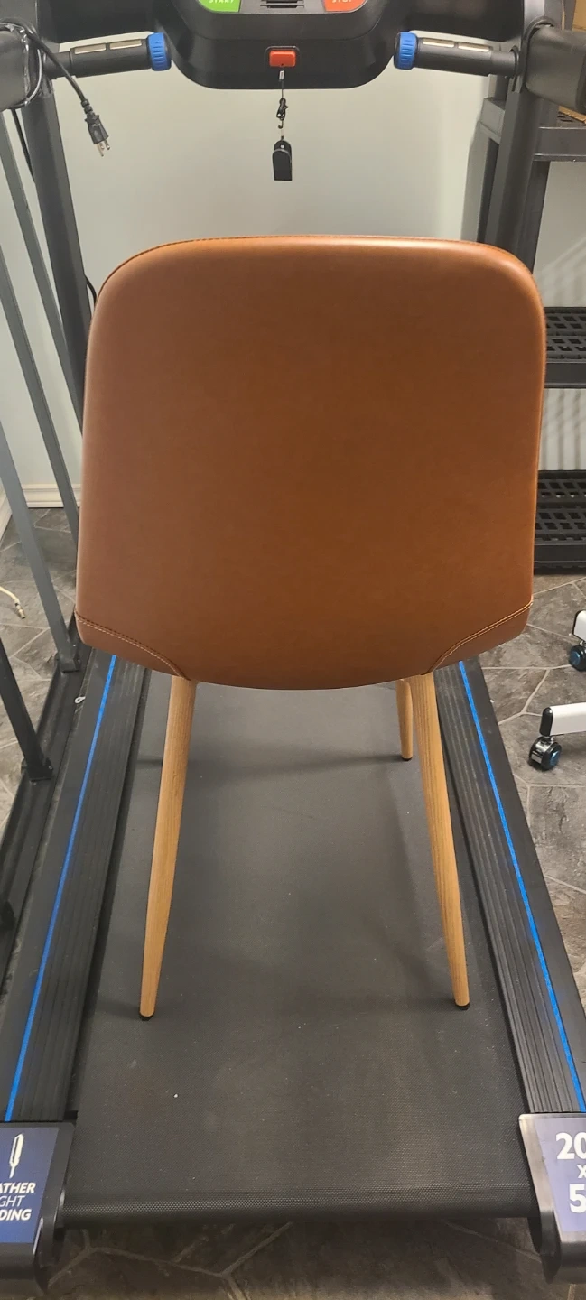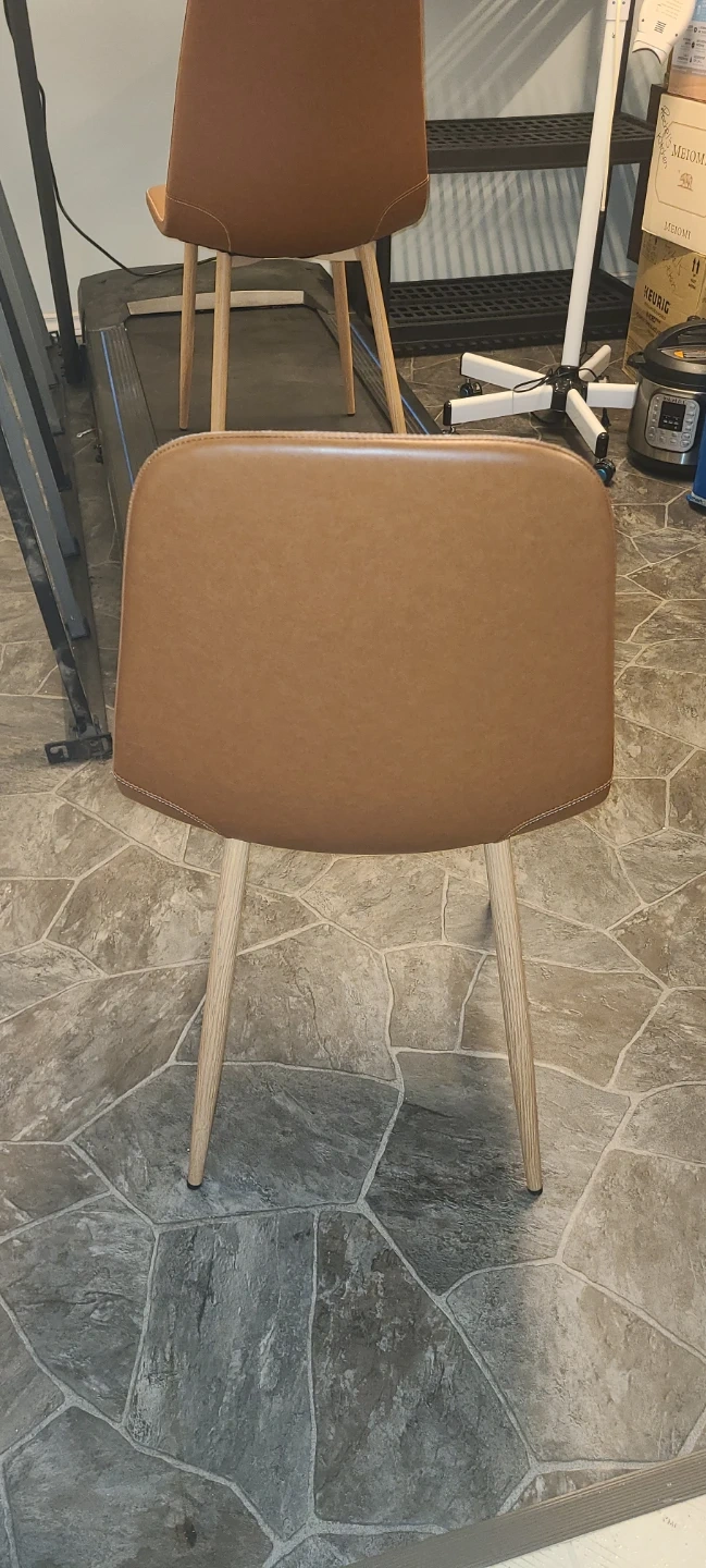 Looking to add some stylish seating to your dining area? I'm selling 2 brown faux leather dining chairs. They're in great shape and would look fantastic around any table! The faux leather is easy to clean and the wooden legs provide a sturdy base.