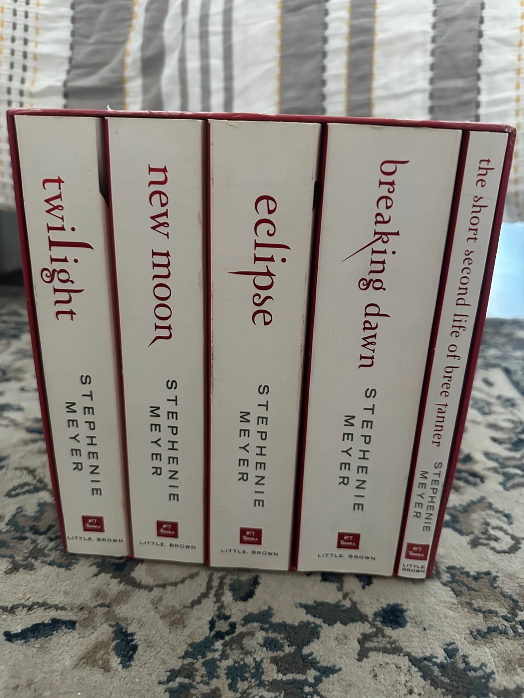π₯ Selling a limited edition collector's set of The Twilight Saga White Collection by Stephenie Meyer. This set includes Twilight, New Moon, Eclipse, Breaking Dawn, and The Short Second Life of Bree Tanner. Perfect for any Twilight fan! π₯