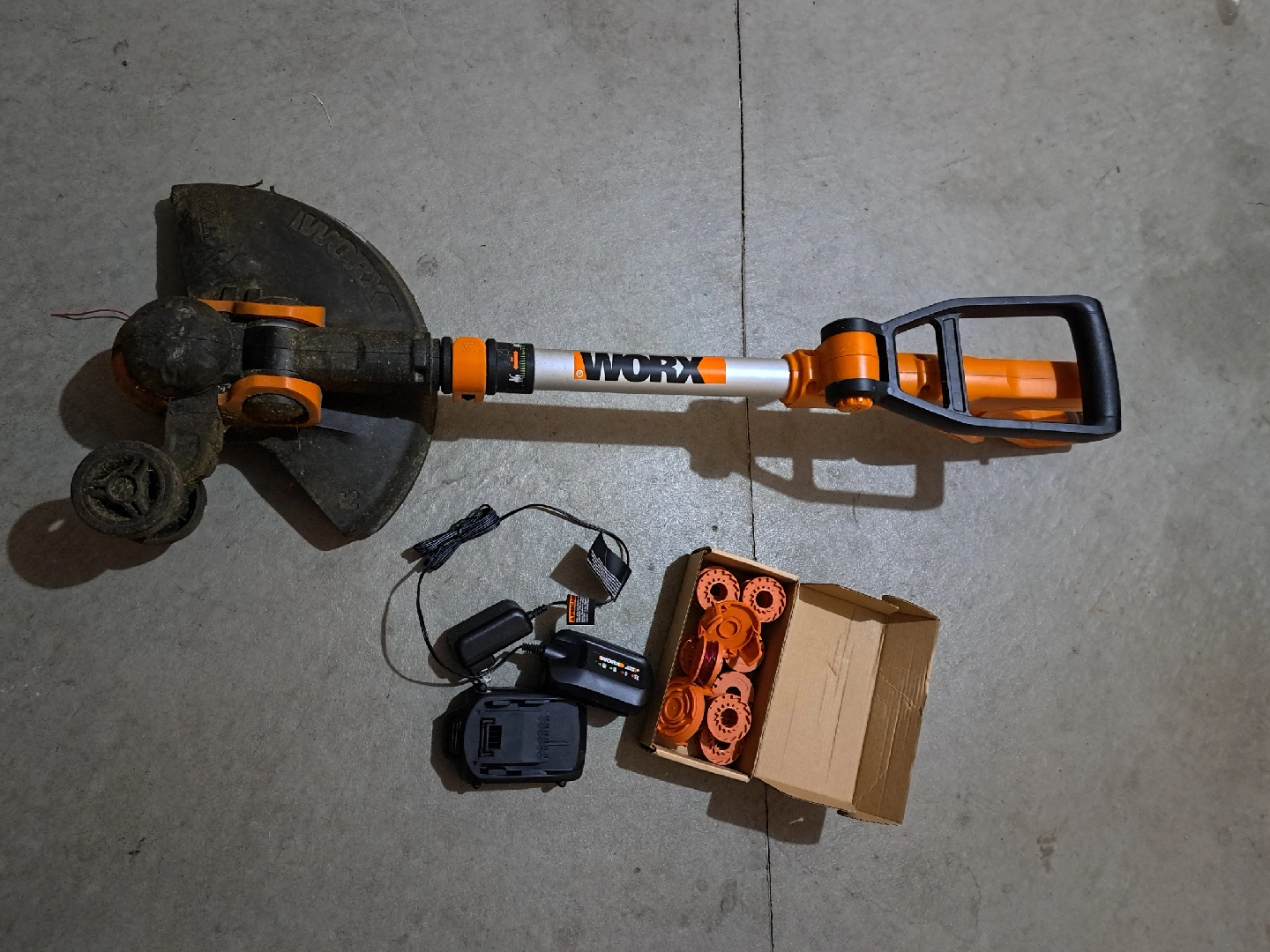 Selling a WORX cordless grass trimmer and edger. It's in good working condition and comes with the battery, charger, and a box of spare parts. Great for keeping your lawn tidy!