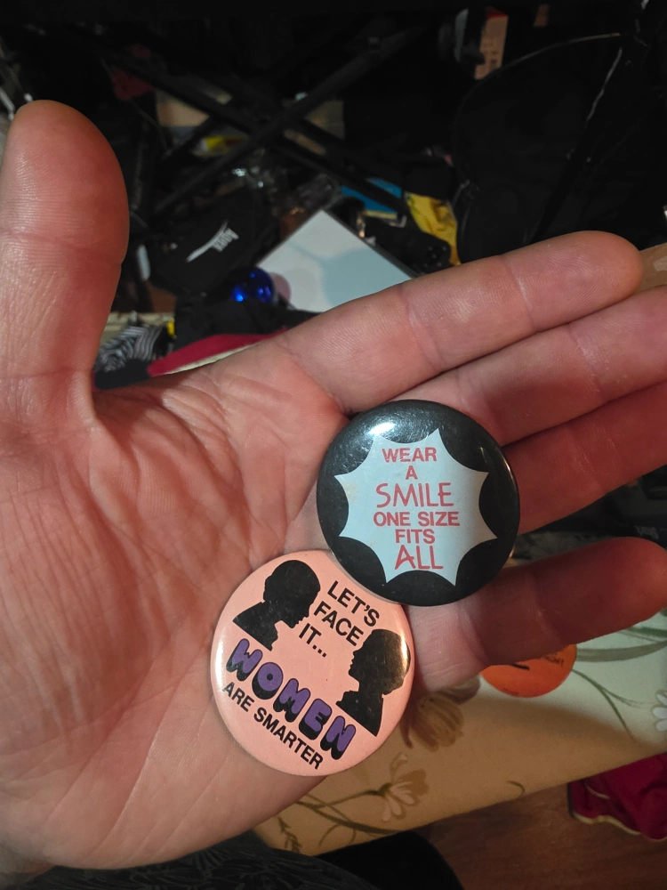 Selling a lot of 5 pinback buttons with various sayings and designs. Great for adding some flair to your jacket, backpack, or collection! 3$ each or 3 for 5$ all 10 for 10