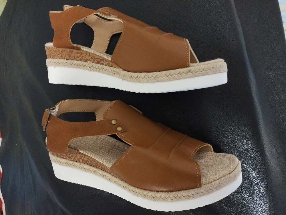 Brown Peep Toe Wedge Sandals - Size 42 / sz 10
