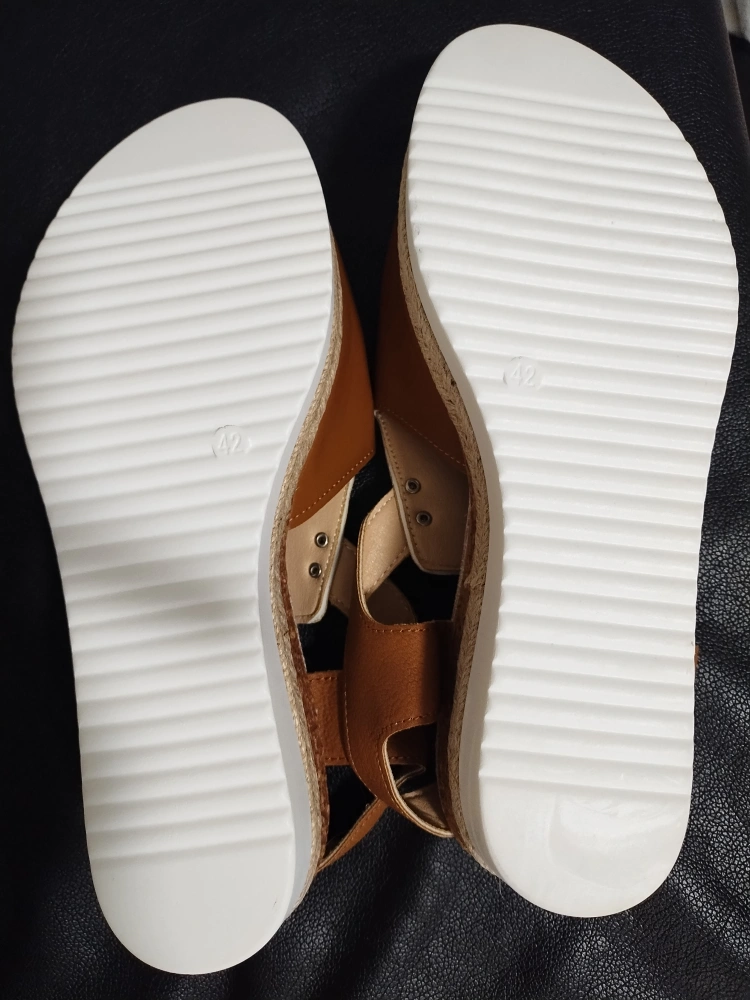 321Brown & white wedge strappy sandal, new never worn, original packaging. Size 10 (42) Women's Pick-up Jarvis/Wellesley. Cash only. Thank you ππ»