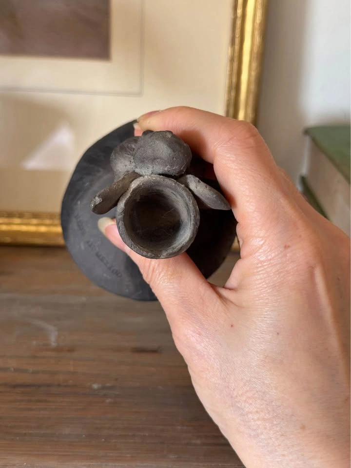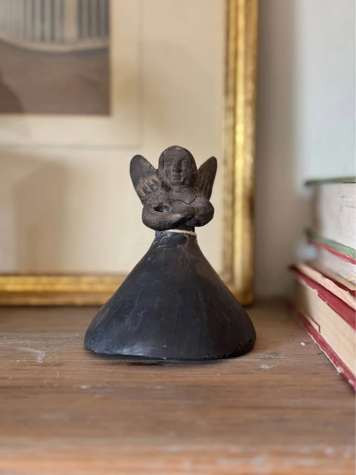 This beautiful vintage Barro Negro Oaxaca pottery angel bell is a stunning example of Mexican craftsmanship from the 1950s. Handmade with precision and care, this piece features intricate details that showcase the rich culture of Mexican pottery. It is a must-have for any collector of Mexican artifacts and is a great way to celebrate the rich heritage of Oaxaca. This is a vintage piece and condition is consistent with age. There is slight chipping at one side of the candleholder but is not very noticeable and does not affect its function. Porch pick up Christie St and St. Clair West Ave (10 min walk from St. Clair WEST Subway station).