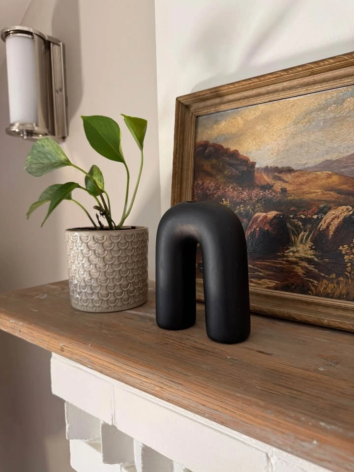 Black Arch Ceramic Taper Candleholder. Minimalist design. Great as a decorative accent. Porch pick up Christie St and St. Clair West Ave. If ad is up, it’s available.