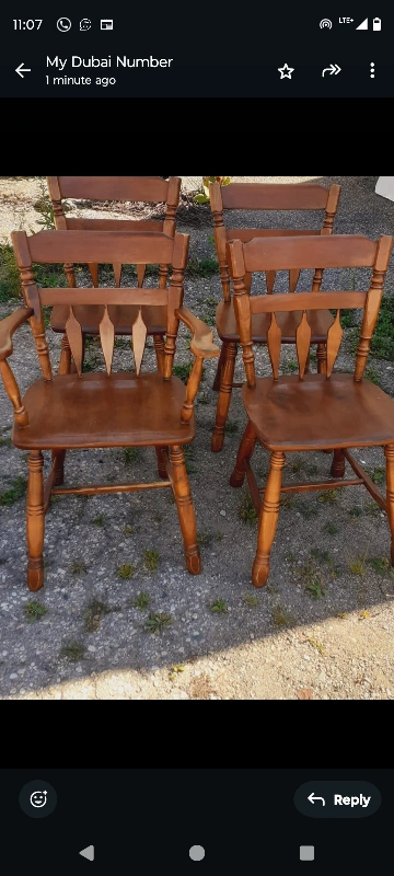 Selling a set of four wooden chairs! They have a classic design and would look great in a dining room or kitchen. They're in good condition and ready for a new home