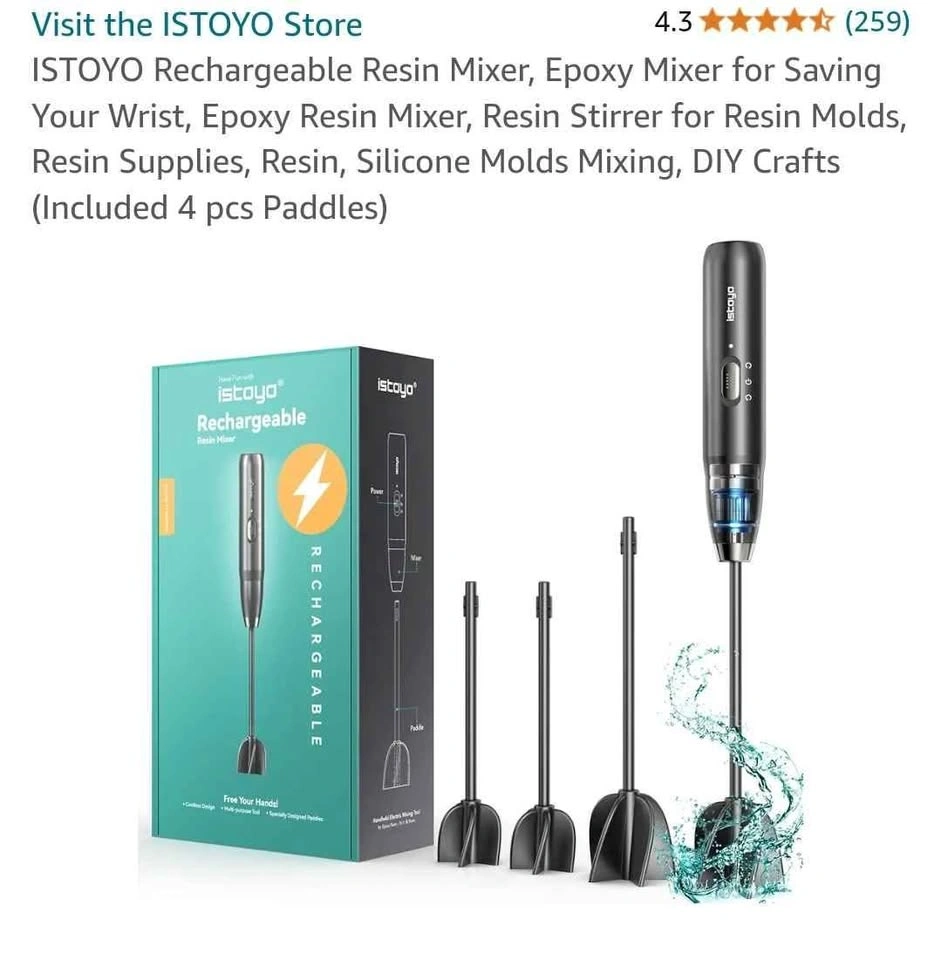 ISTOYO Rechargeable Resin Mixer, Epoxy Mixer for Saving Your Wrist, Epoxy Resin Mixer, Resin Stirrer for Resin Molds, Resin Supplies, Resin, Silicone Molds Mixing, DIY Crafts (Included 4 pcs Paddles)